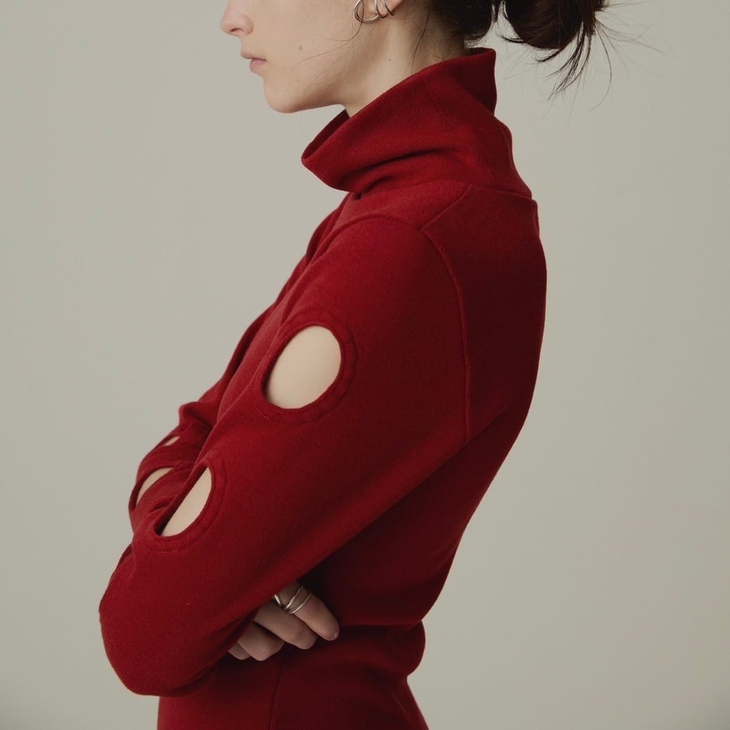 raiMu / Cutout Long Smooth Knit Dress(Red)