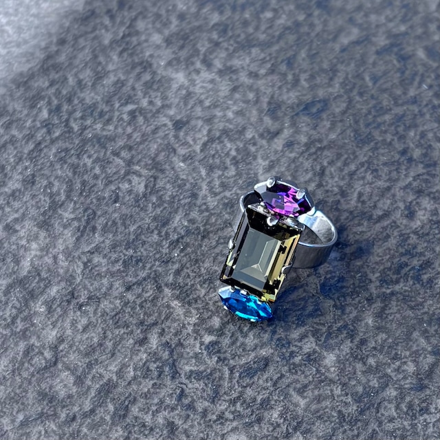 石をアンバランスに積み重ねたようなデザインのRING。 ひとつで存在感のあるアイテムです。 ※着用画像は色違いのものを掲載。 omikhleの作品はすべてデザイナーが丁寧に1点1点、制作しています。 すべて手作業のため個体差がございます。 リングサイズ:フリー(約11号) モチーフ:約25×20mm 素材:クリスタルガラス、真鍮 ※+2号程度の調整をする事ができます。サイズ調節の際はゆっくり力を加えてください。サイズ調節を何度も繰り返したり、無理な曲げ伸ばしは破損やメッキが剥がれる原因になりますのでご注意ください。 《 ご購入前にご確認ください 》 ●トップページよりSHOPPING GUIDEをご一読ください。 ●商品写真は撮影状況やPC環境により、モニターでご覧になった際と実際では色調が若干異なることがあります。ご了承の上お買い求めください。 ●原則として不良品以外の返品はお断りをさせていただきます。あらかじめご了承ください。 ●タグのついていないものや、商品に匂いや汚れをつけたり、着用されたもの、洗濯されたものは交換/返品できません。