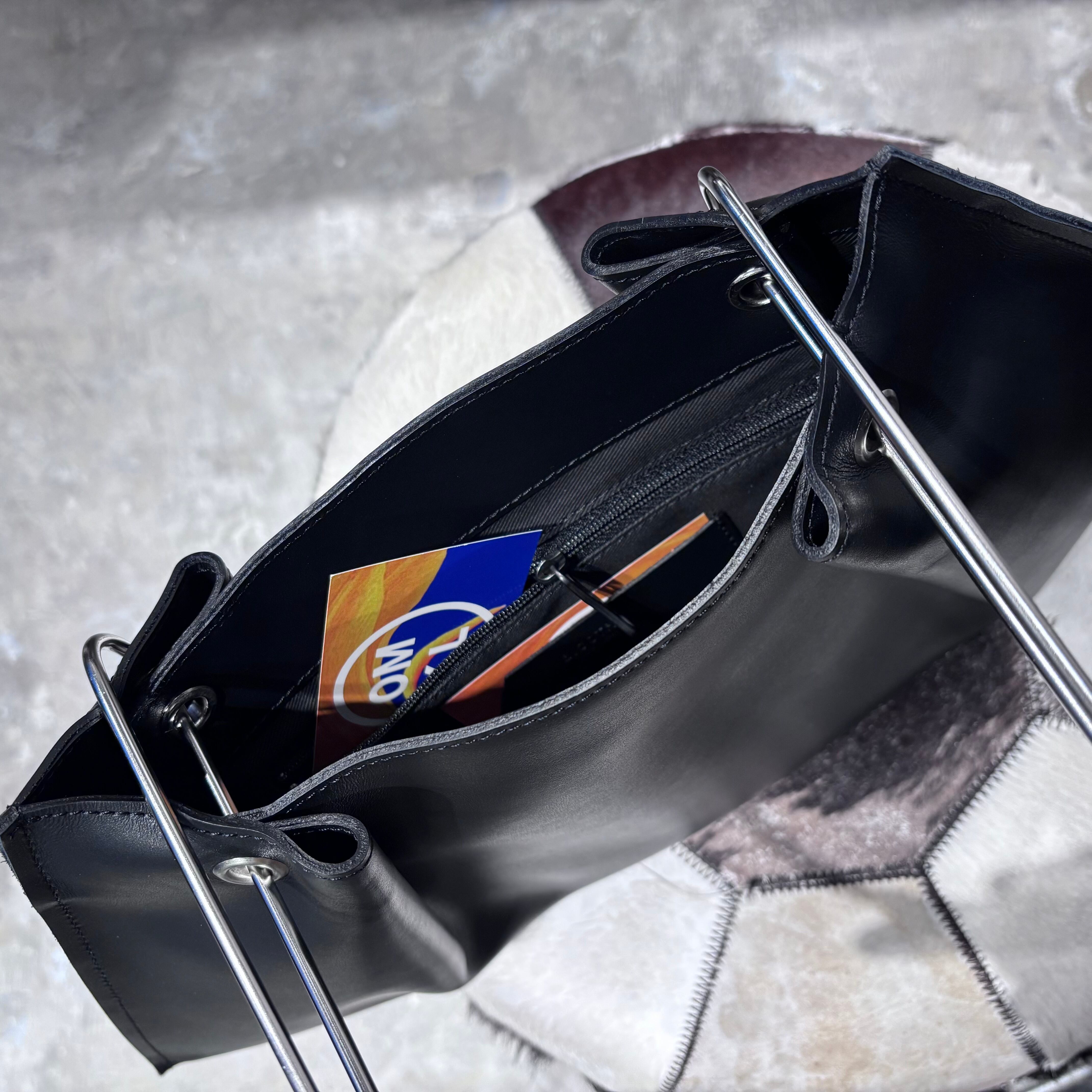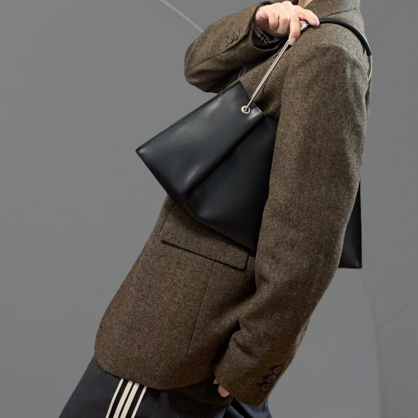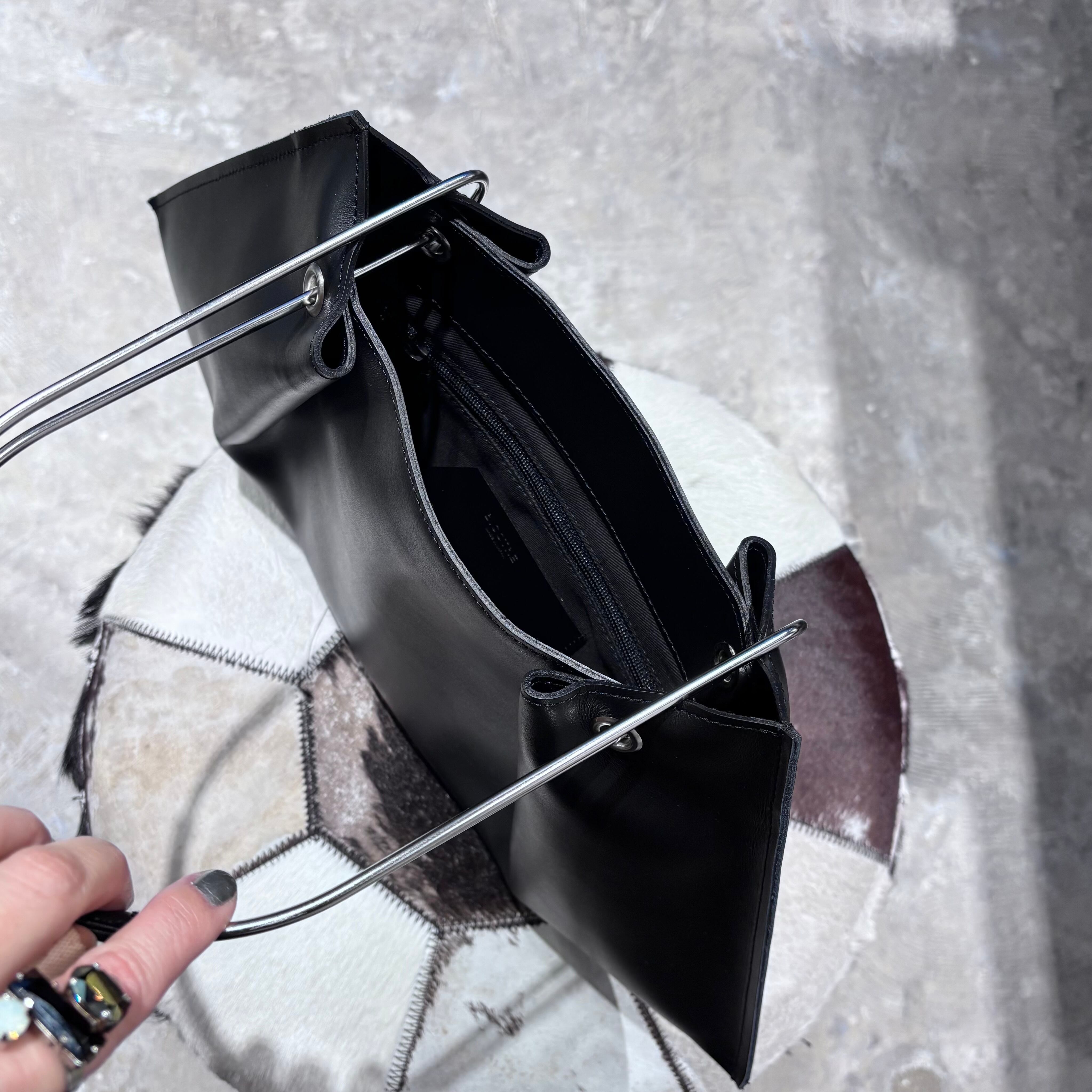 オリジナルメタルハンドルがクールなショルダーバッグ。