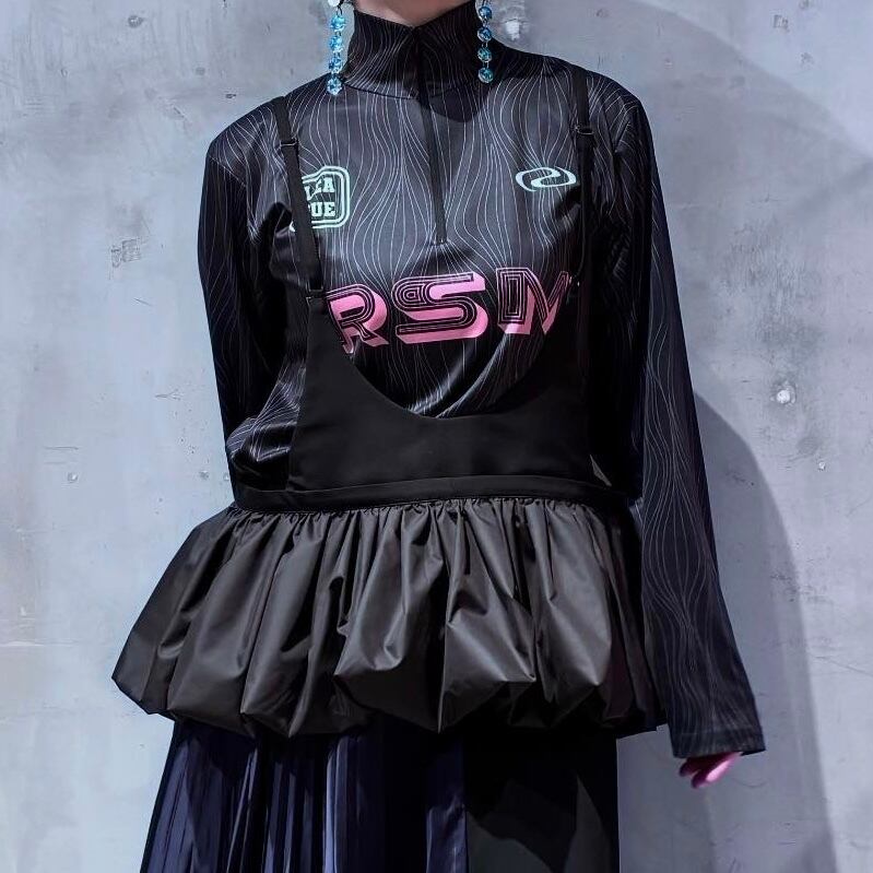 ビスチェとしてはもちろん、肩紐を伸ばすと裾が腰周りまでくるのでミニスカート+パンツ風のコーディネートにも◎