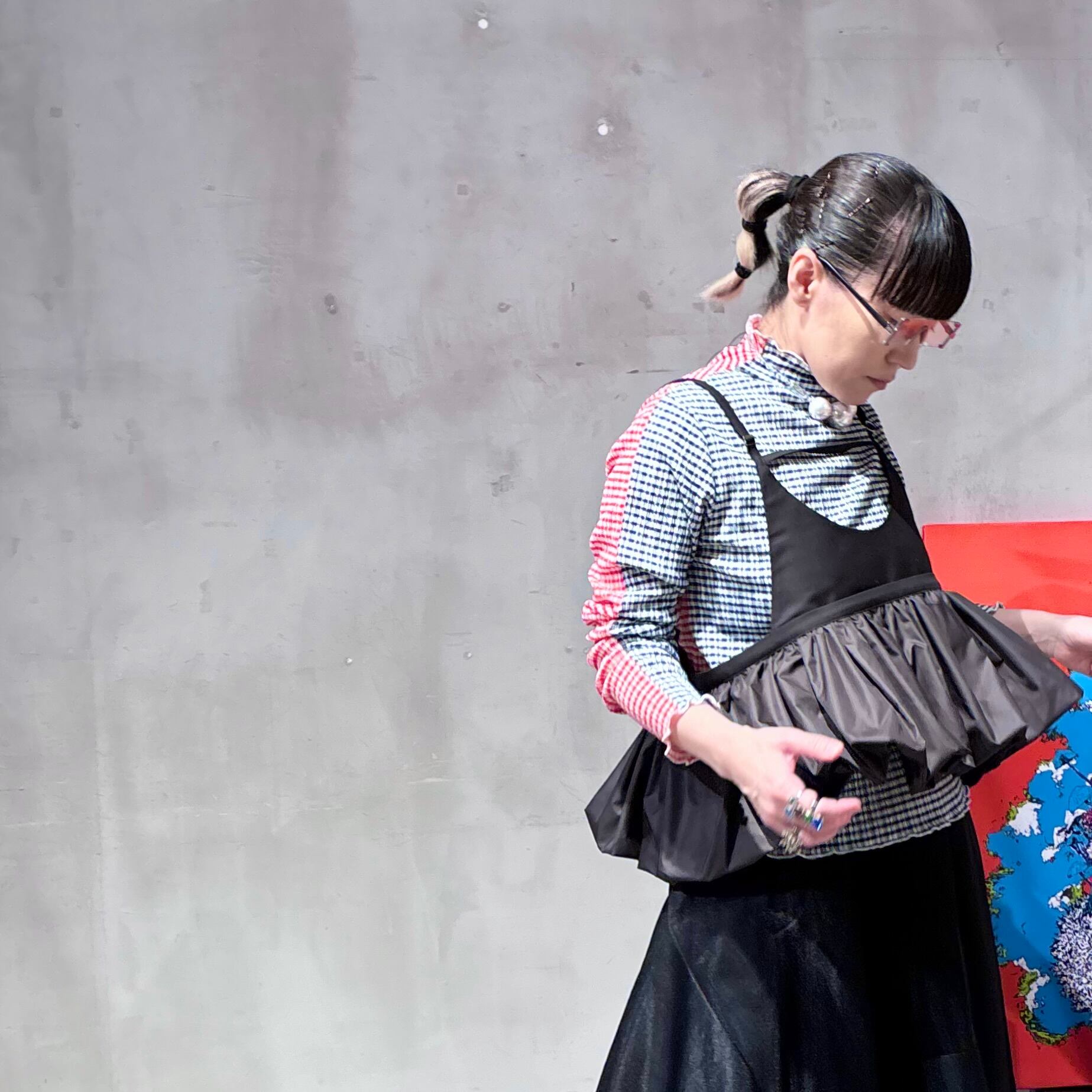 またバルーンボリュームの裾はタフタ素材で軽さがあり程よいハリと光沢感があるので、たっぷりと入ったギャザーも甘くなり過ぎず様々なスタイリングに活躍します。