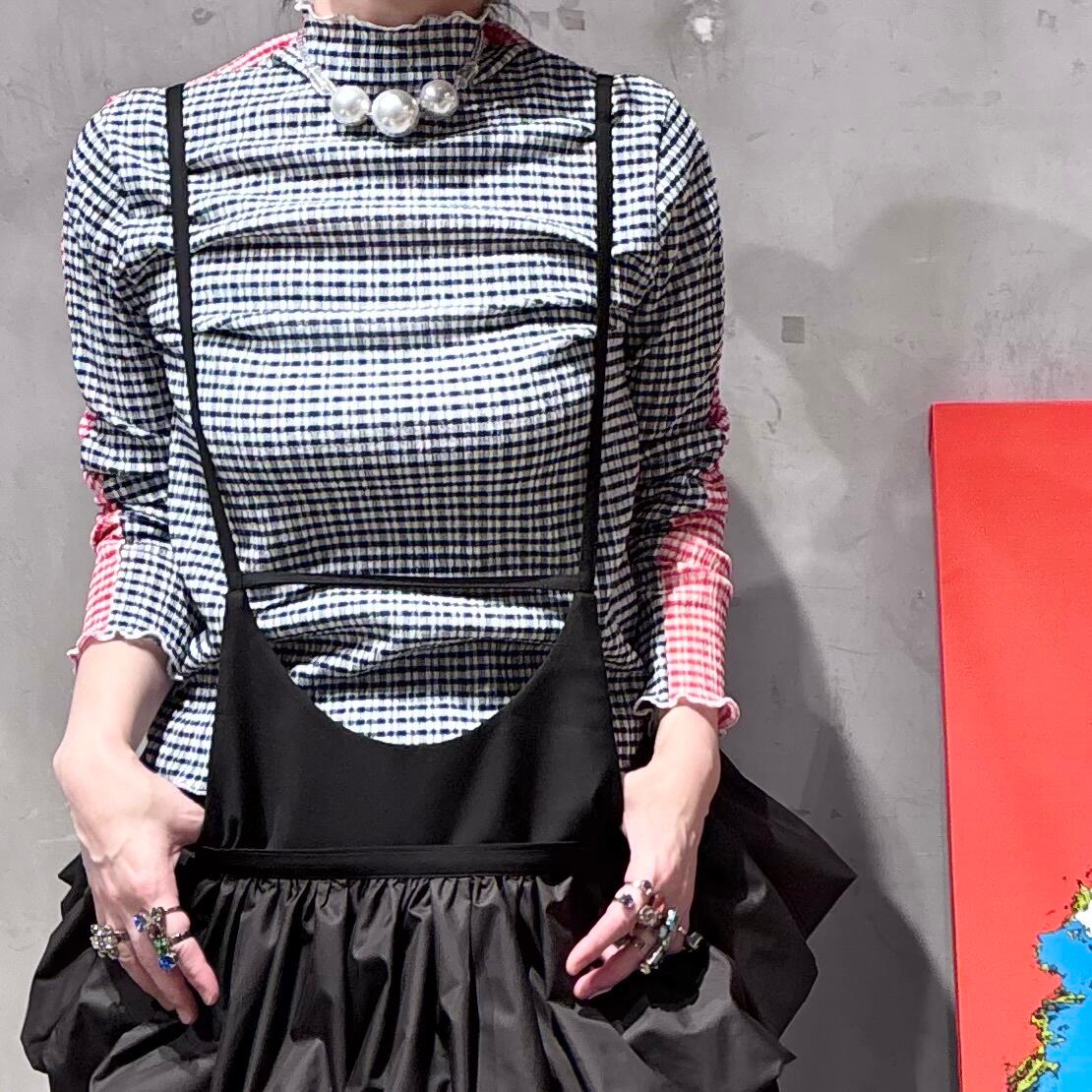 REDとNAVYどちらを前にしても着用できる2way tops。