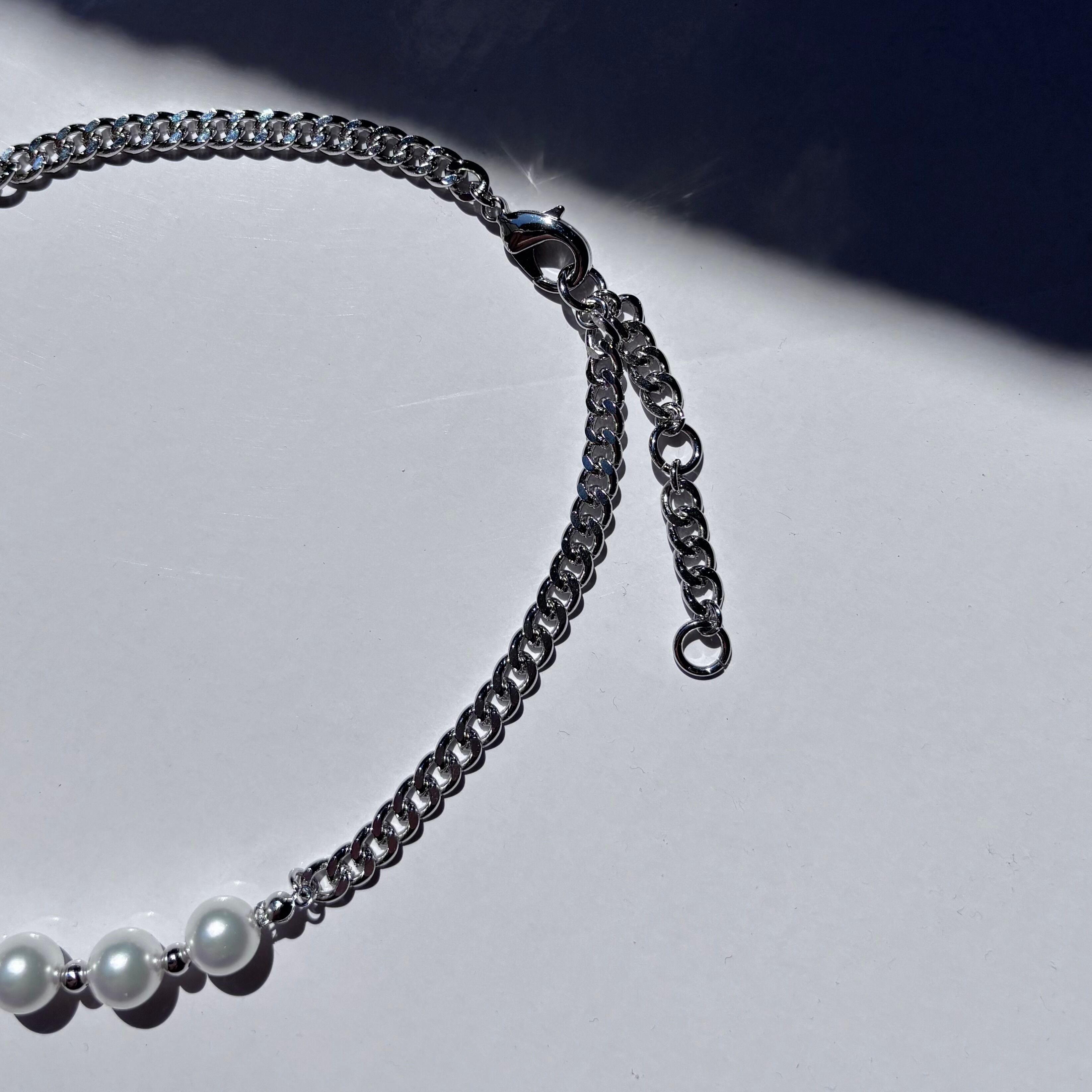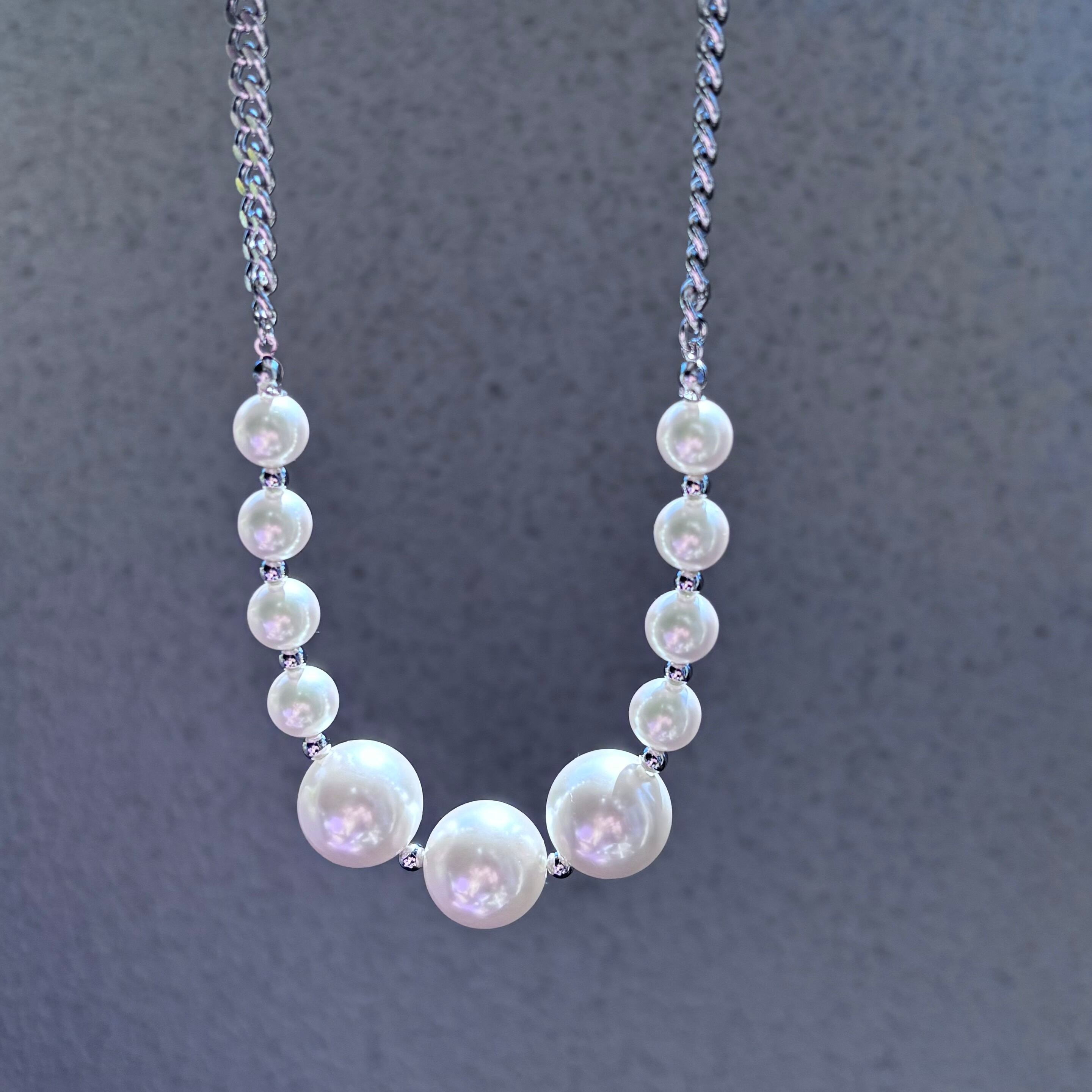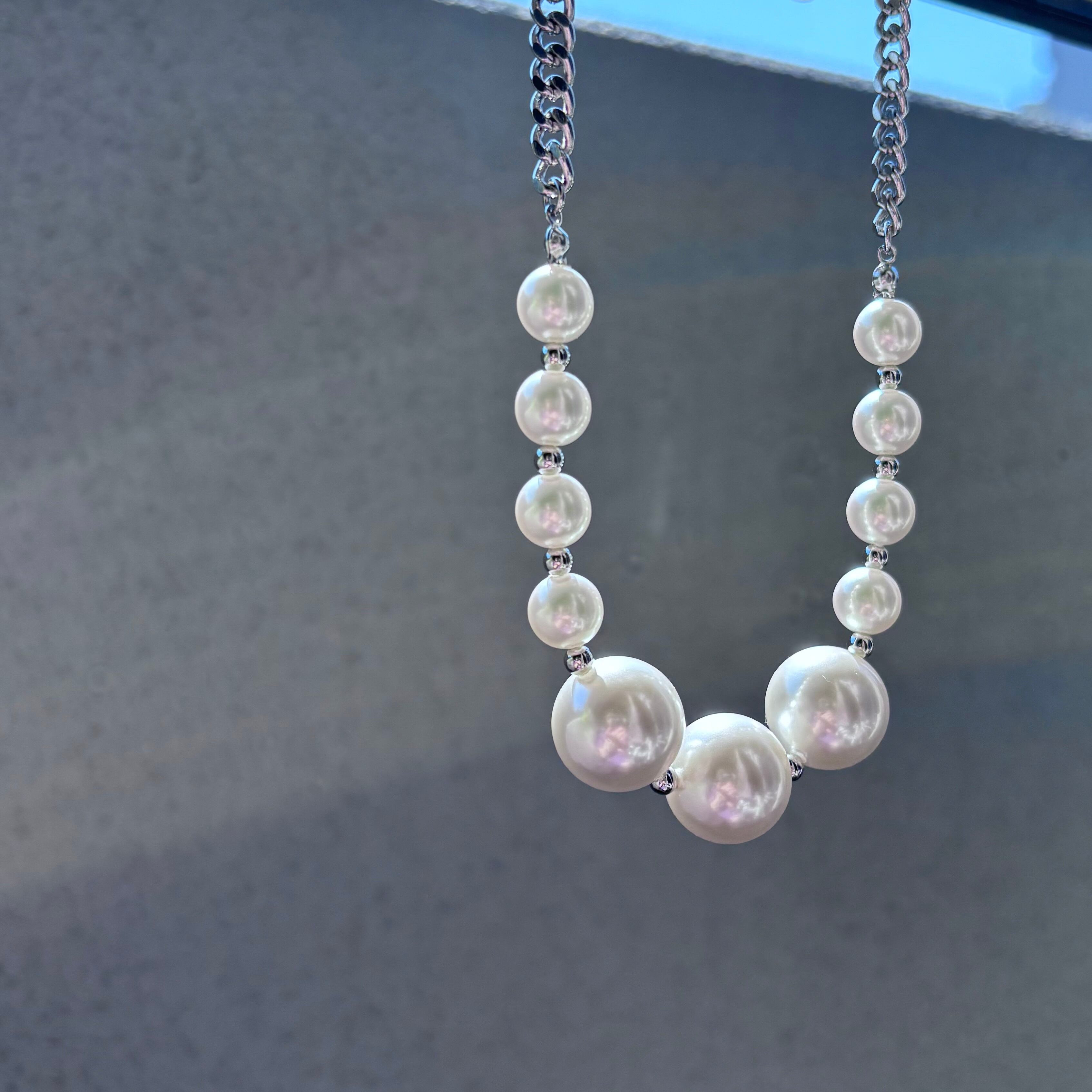 大小パールの連なりがシンプルながら印象的なネックレス。