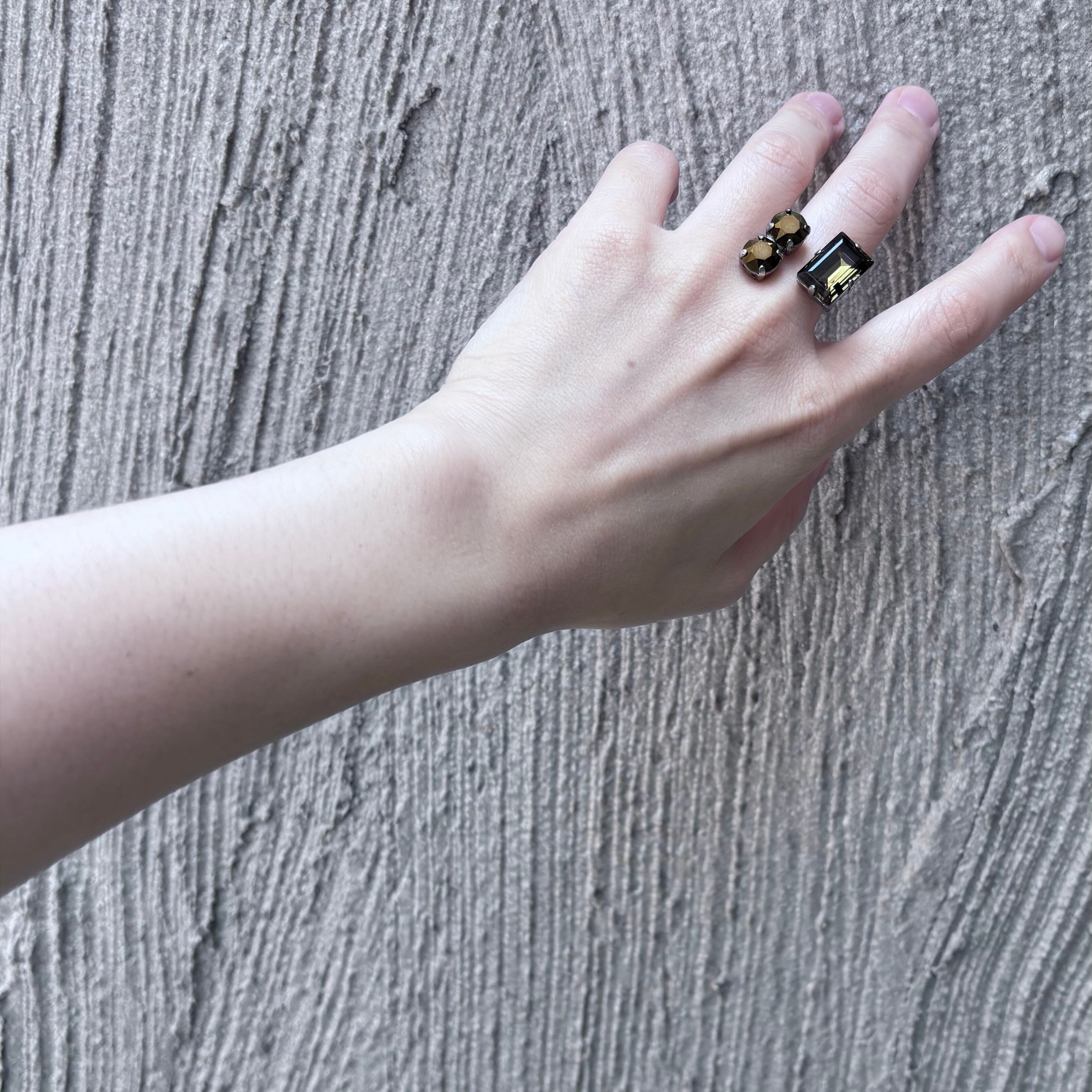 大きなレクタングルのクリスタルを使用したデザインはそれだけで印象的な手元に。