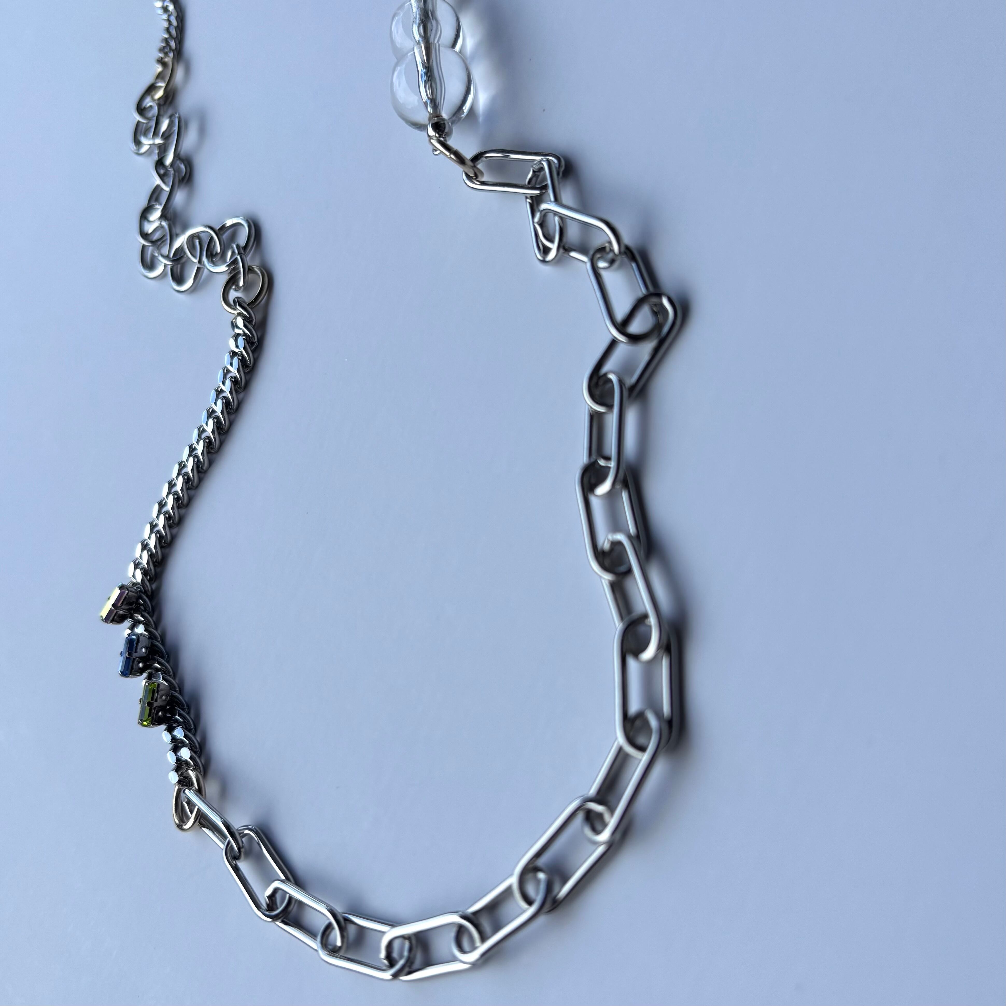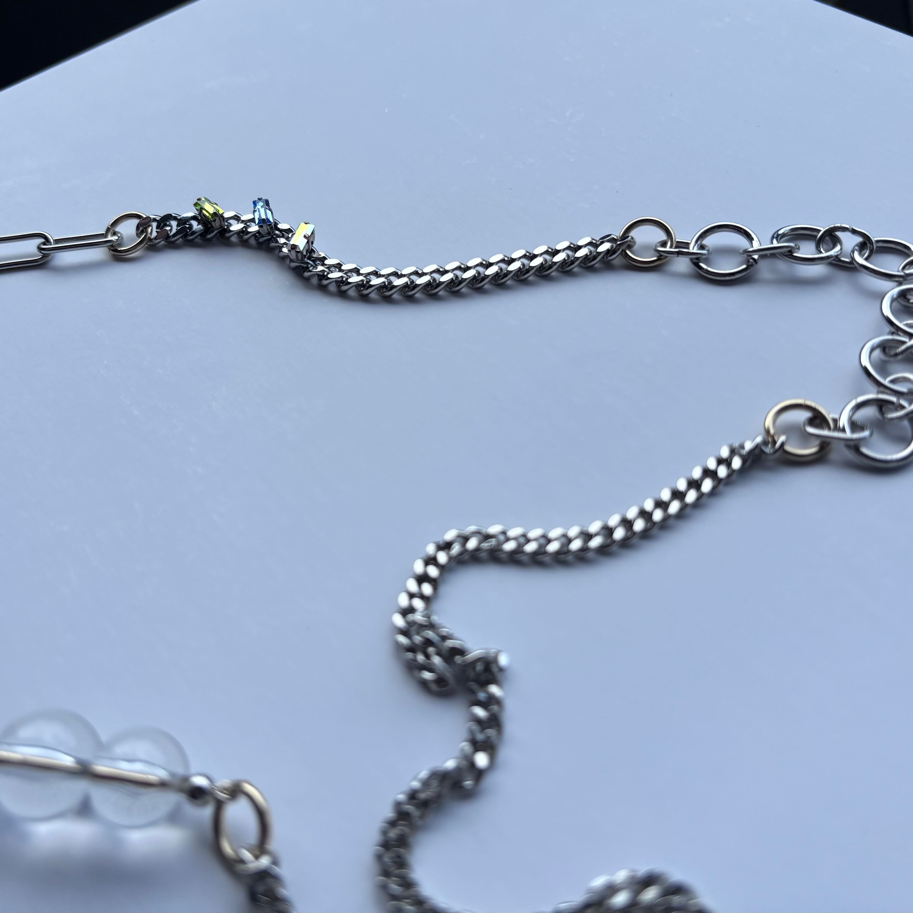 クリスタルやクリアパールのアクセントがあり、一連でも存在感のあるデザイン。