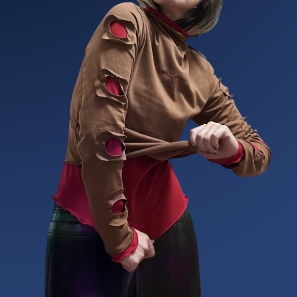 raiMu / Cutout Layered Tops (Brown/Red)