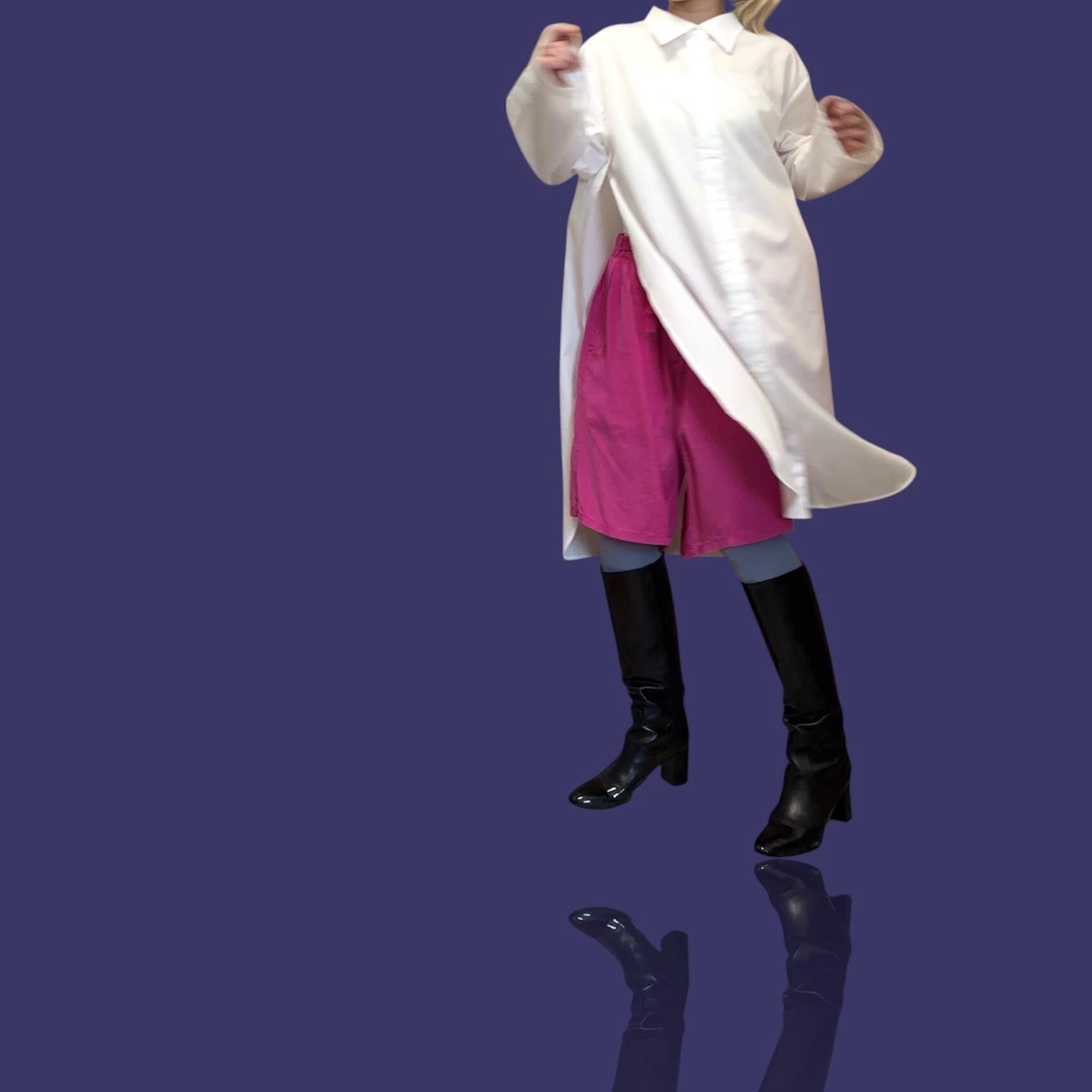 スリットが深く入った遊び心たっぷりのロングシャツ。