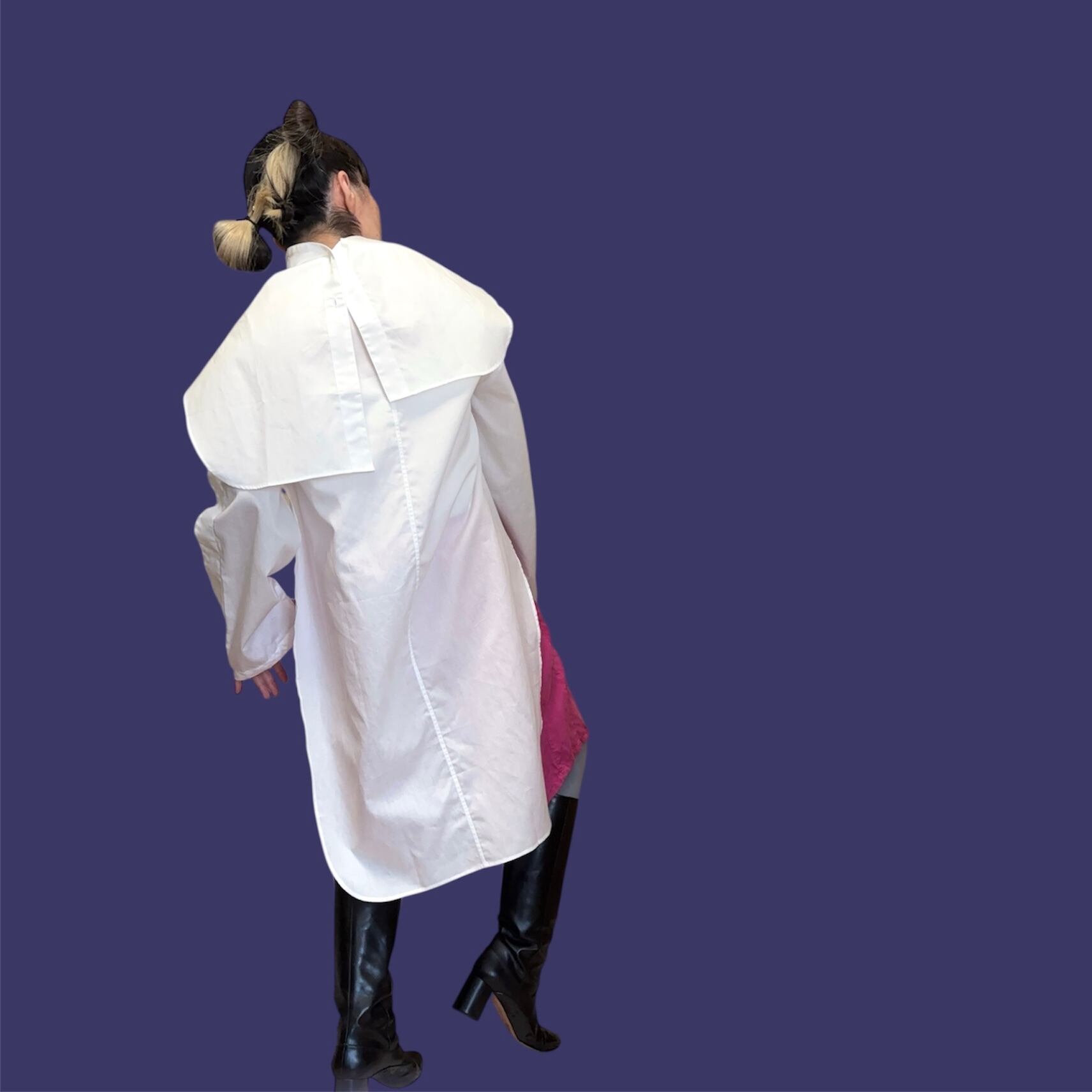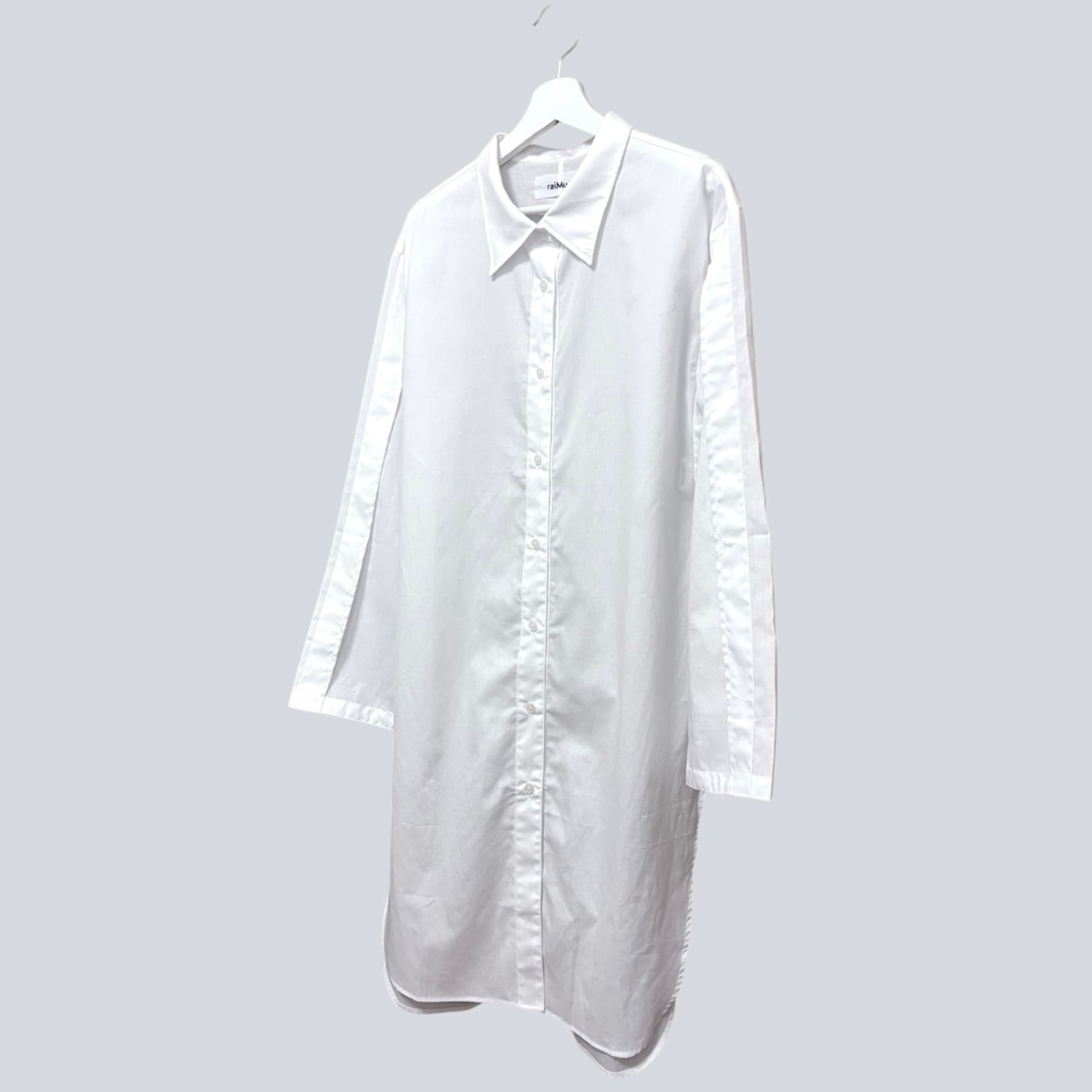 白シャツはワードロープにいくつあっても活躍するアイテムですが、raiMuのこのWing High Slit Long Shirtはその中にプラスして間違いない一着です◎