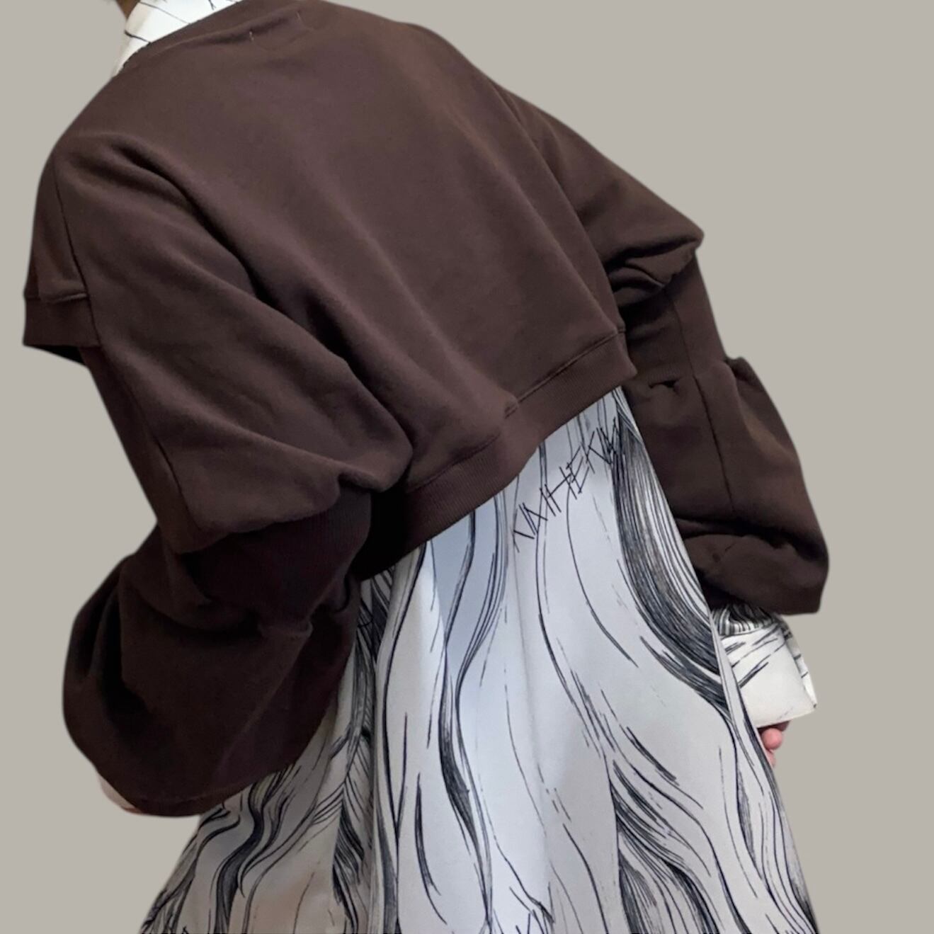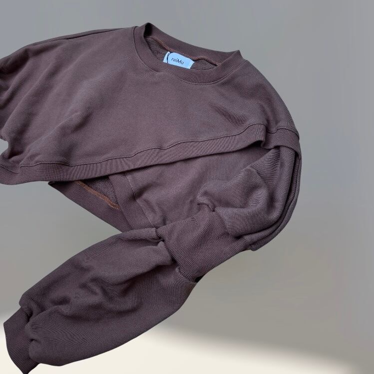 カットソーやシャツ、ワンピースの上から重ねるだけで、スウェットの楽ちんな着心地とは思えないくらいおしゃれなコーディネートが完成します。