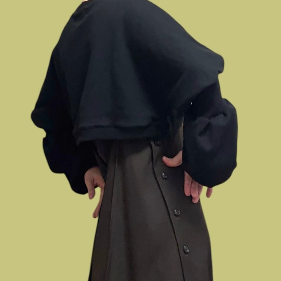 カットソーやシャツ、ワンピースの上から重ねるだけで、スウェットの楽ちんな着心地とは思えないくらいおしゃれなコーディネートが完成します。