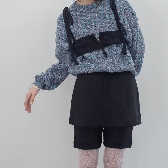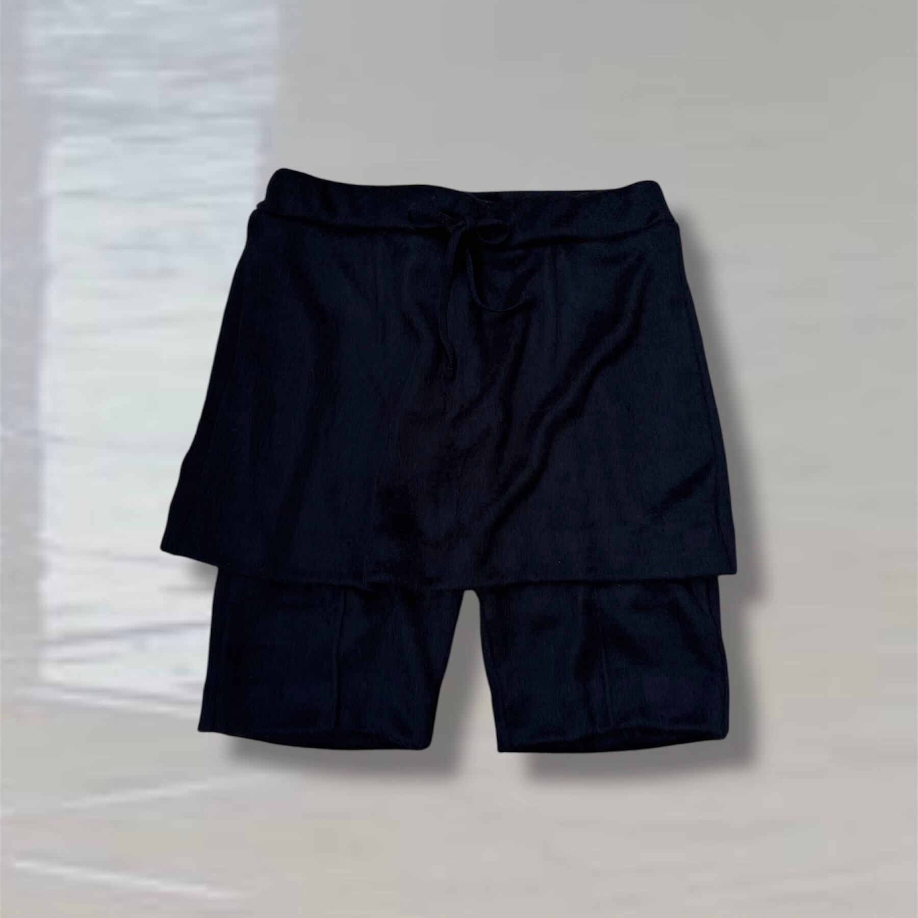 バイカーレギンス風のショートパンツにミニスカートが重なったようなボトムスです。