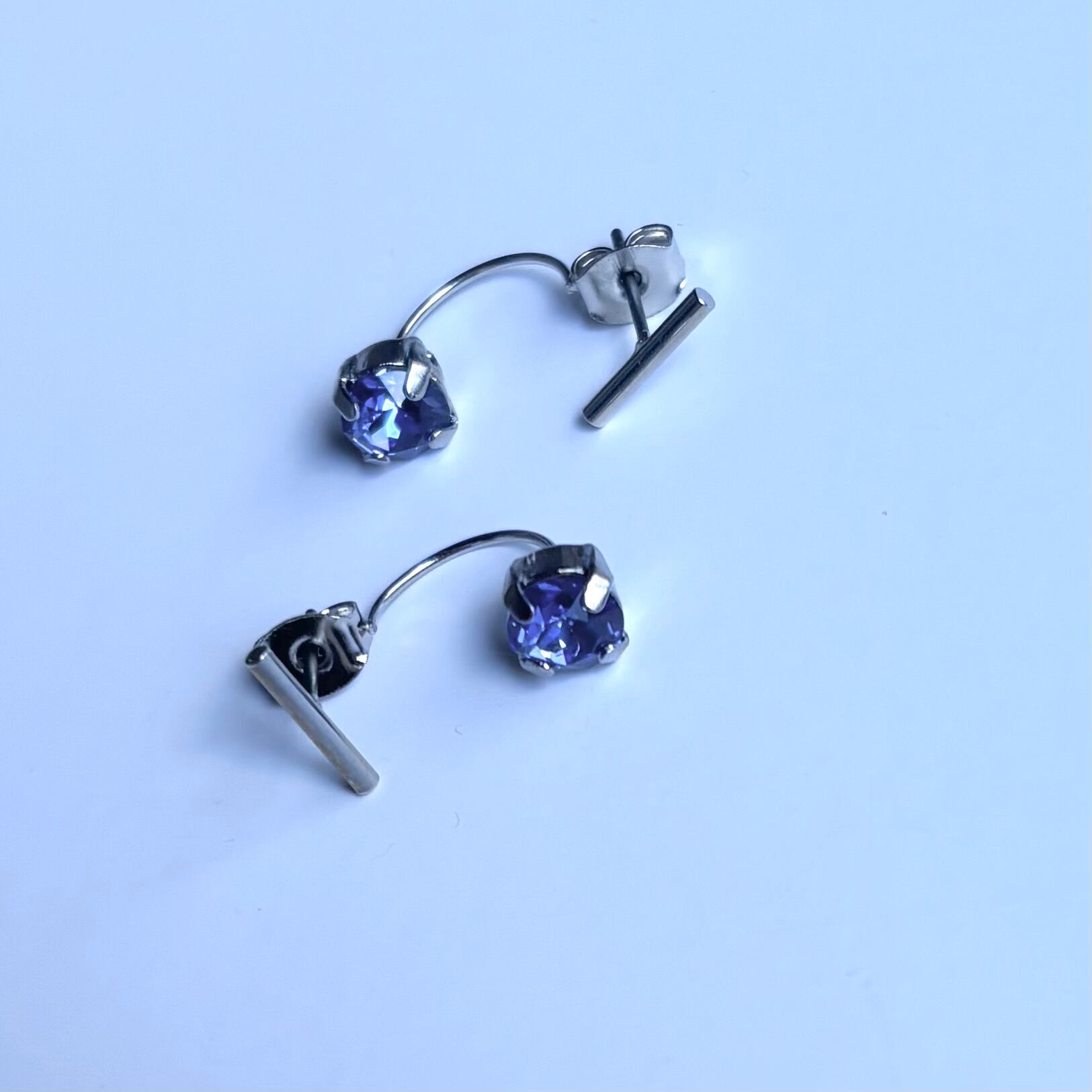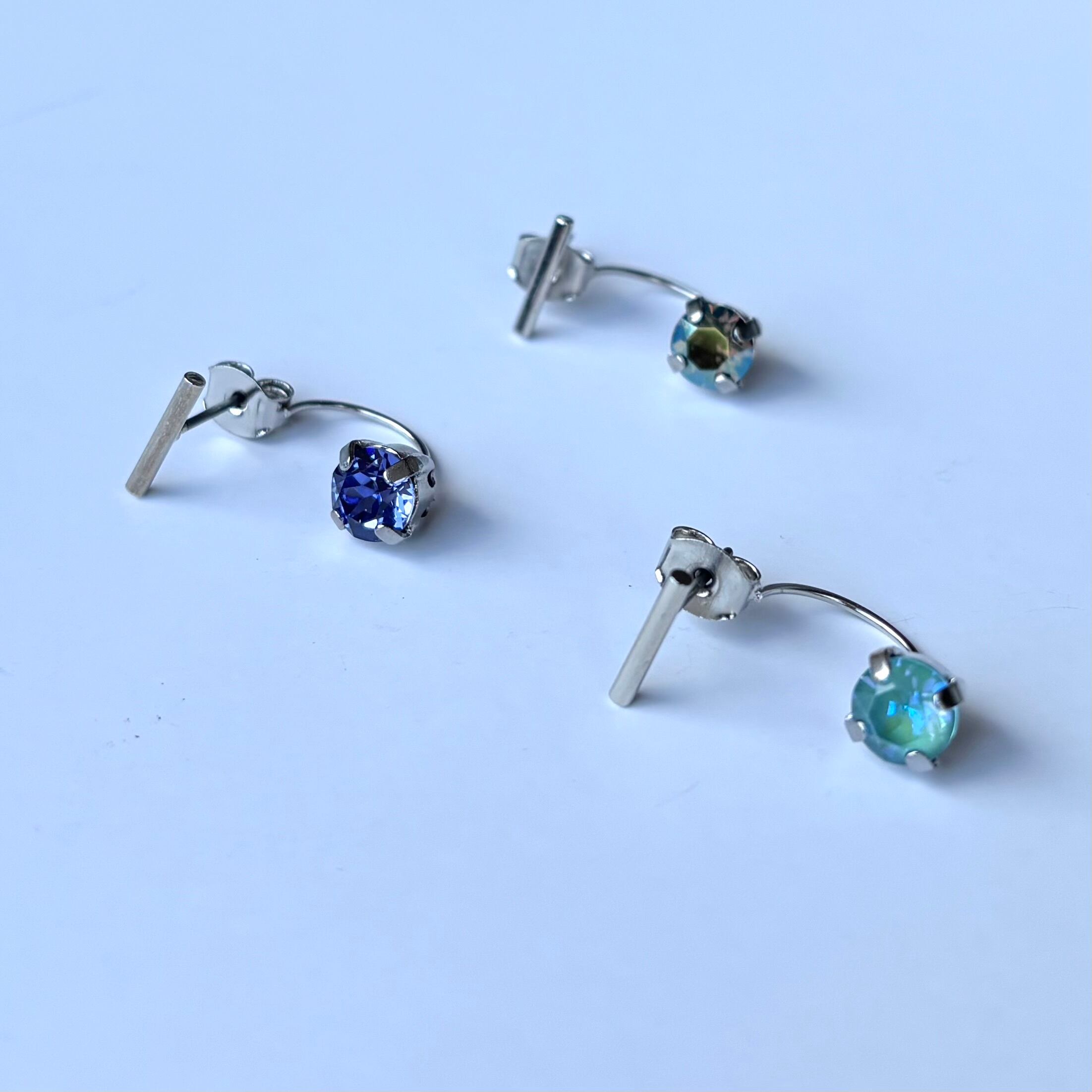 メタルスティック(color:silver)×クリスタルの華奢なピアスです。