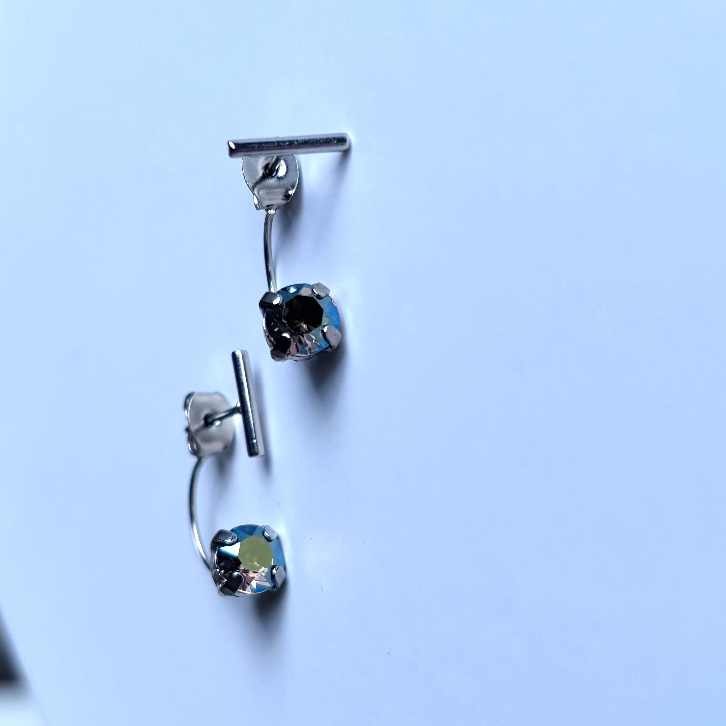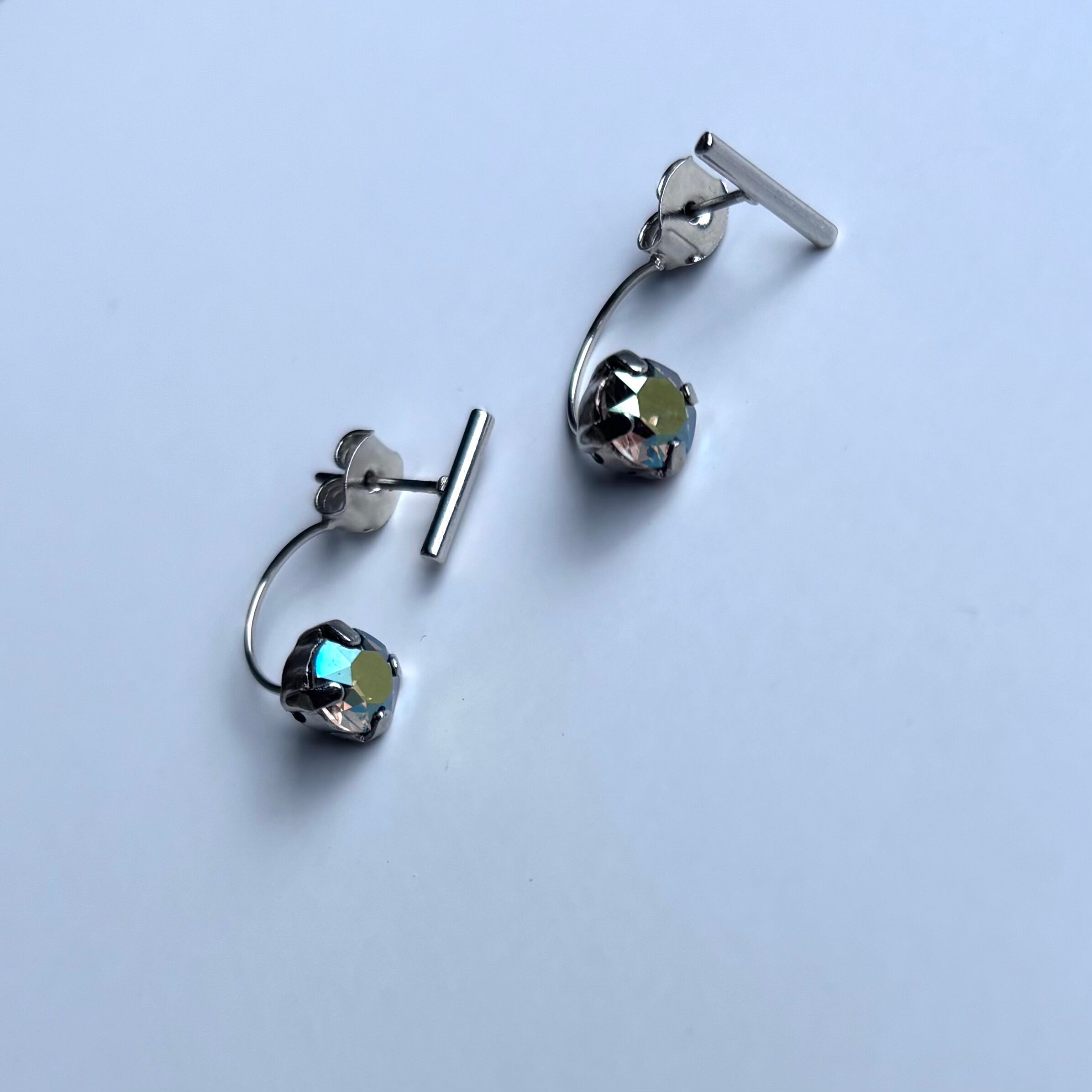 メタルスティック(color:silver)×クリスタルの華奢なピアスです。