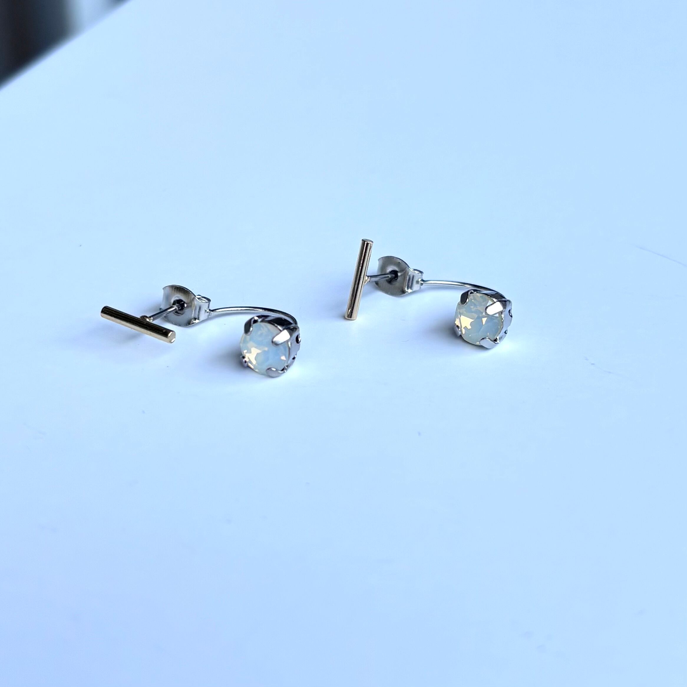 メタルスティック(color:gold)×クリスタルの華奢なピアスです。