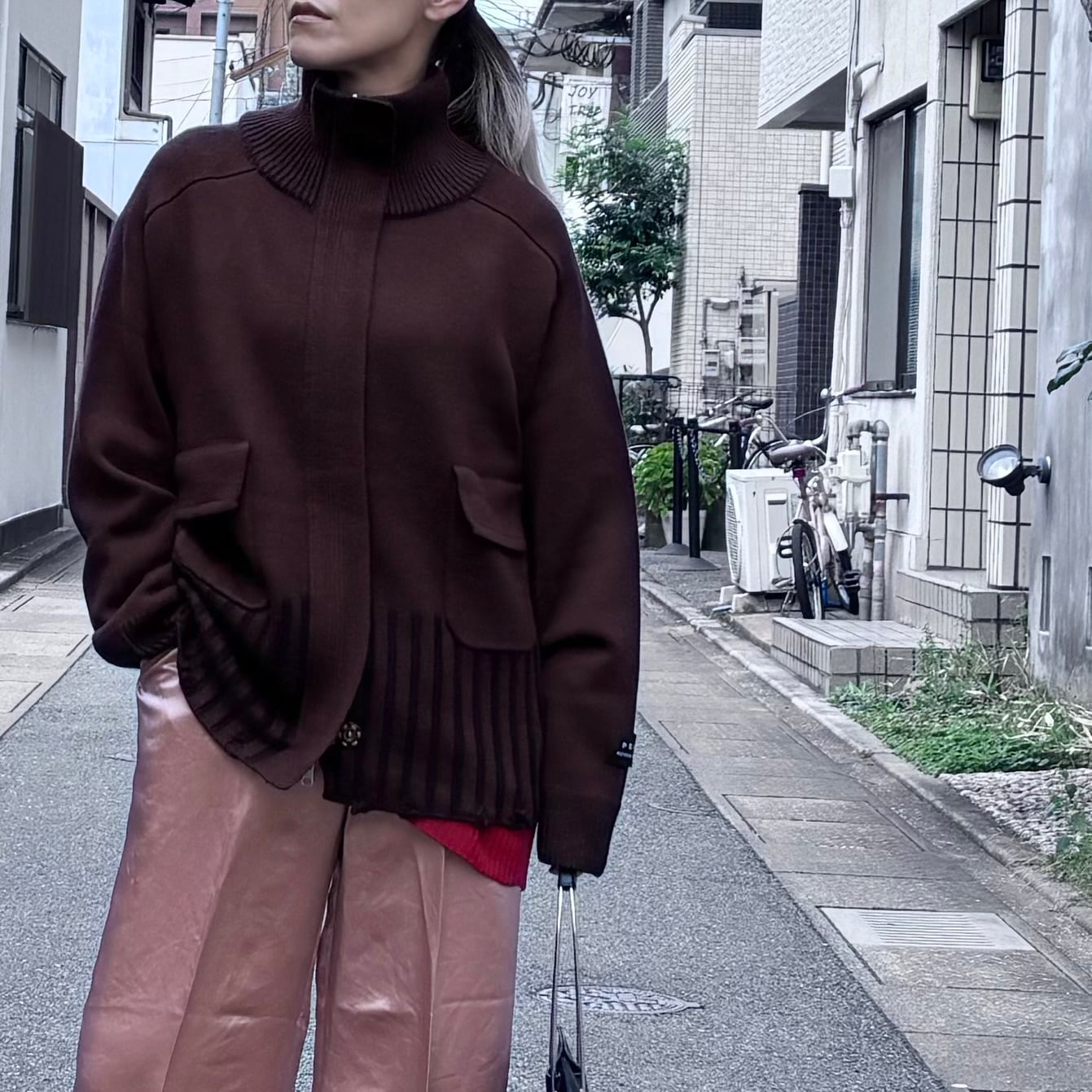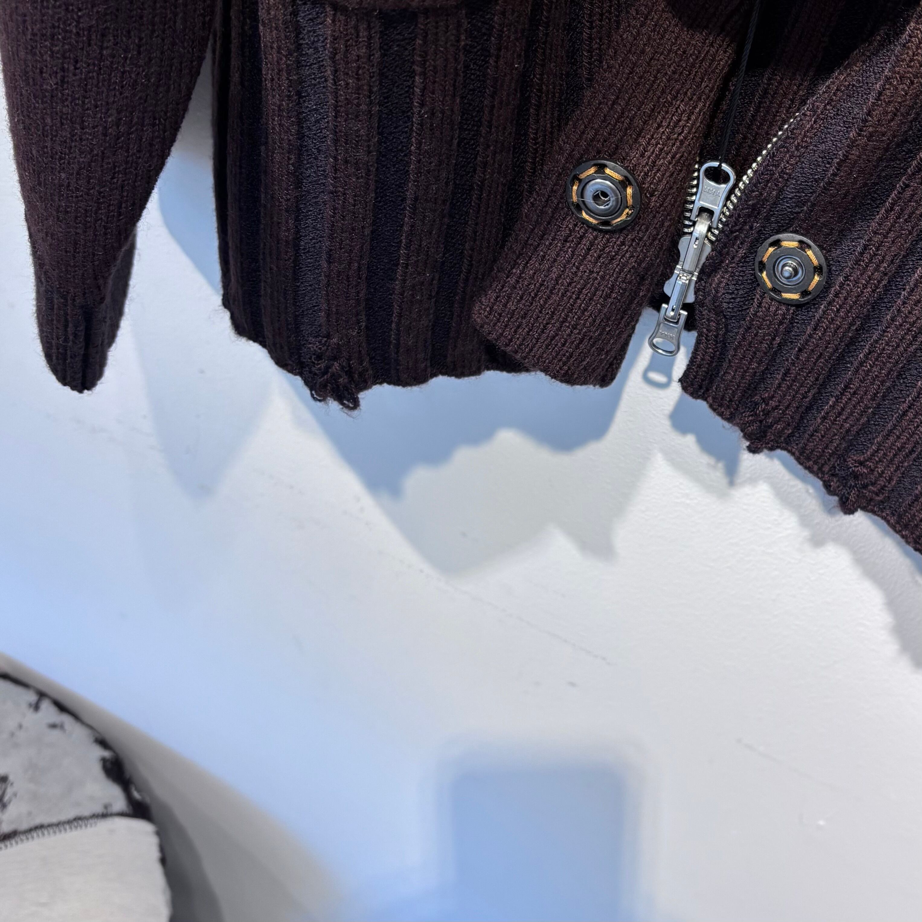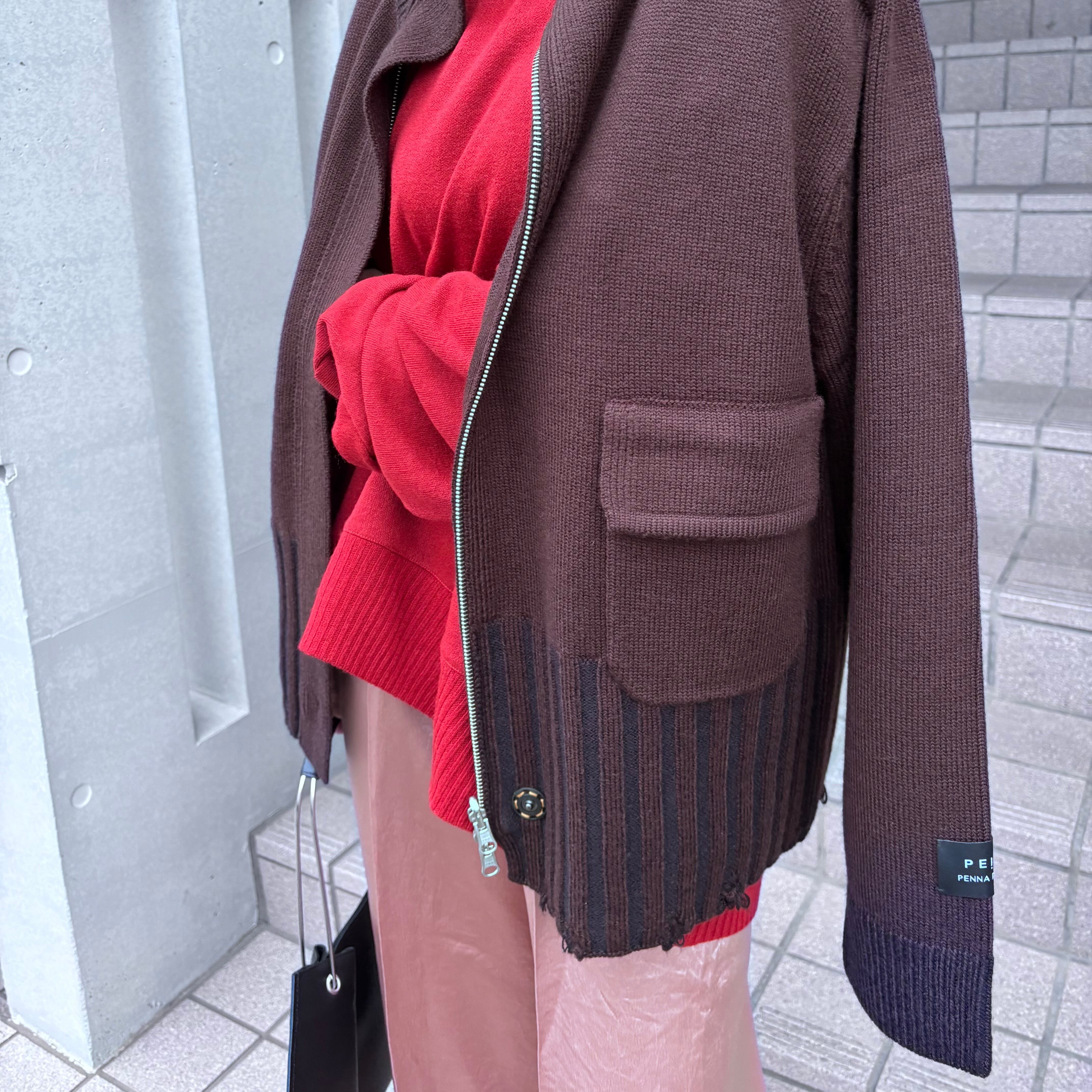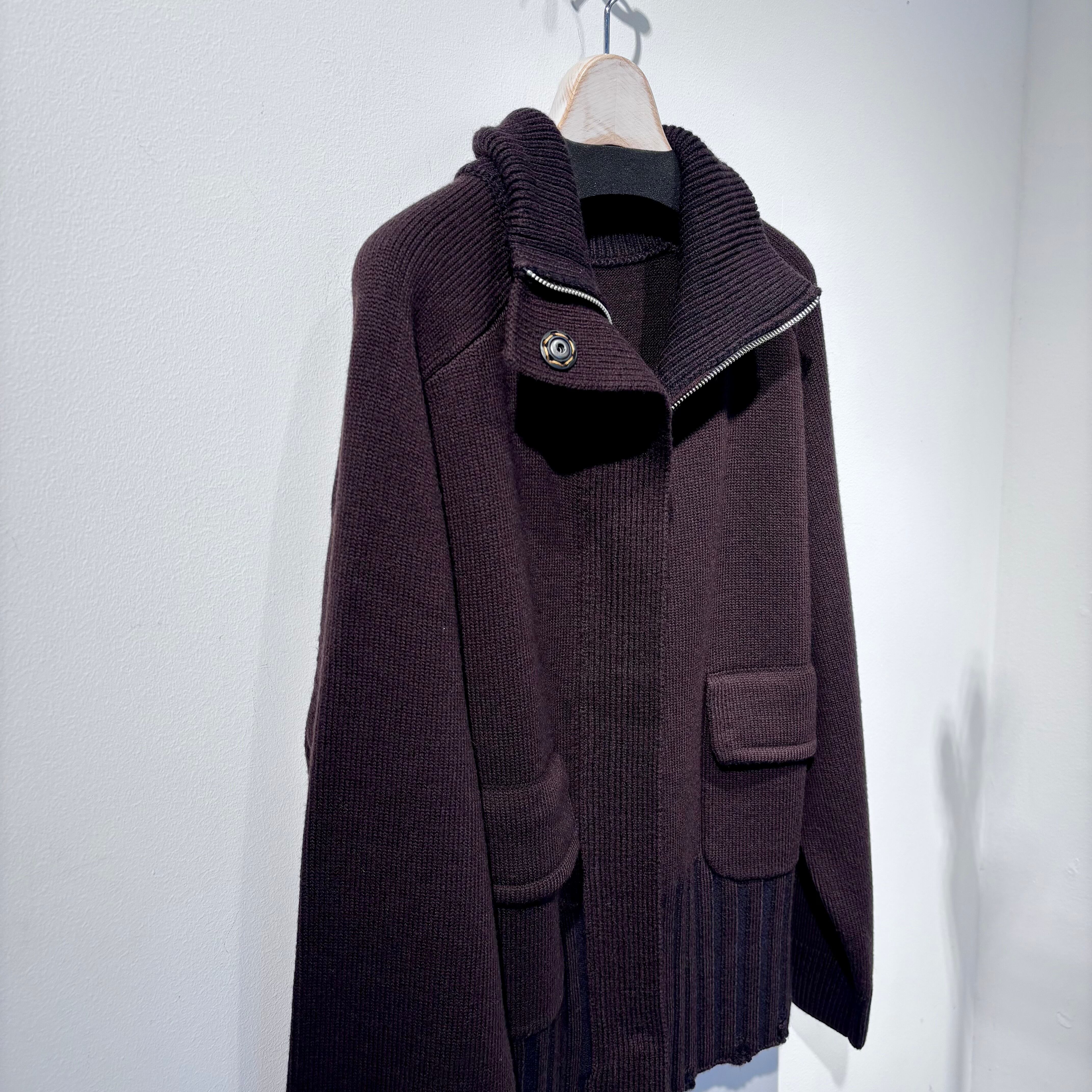 Wジップのニットコート。