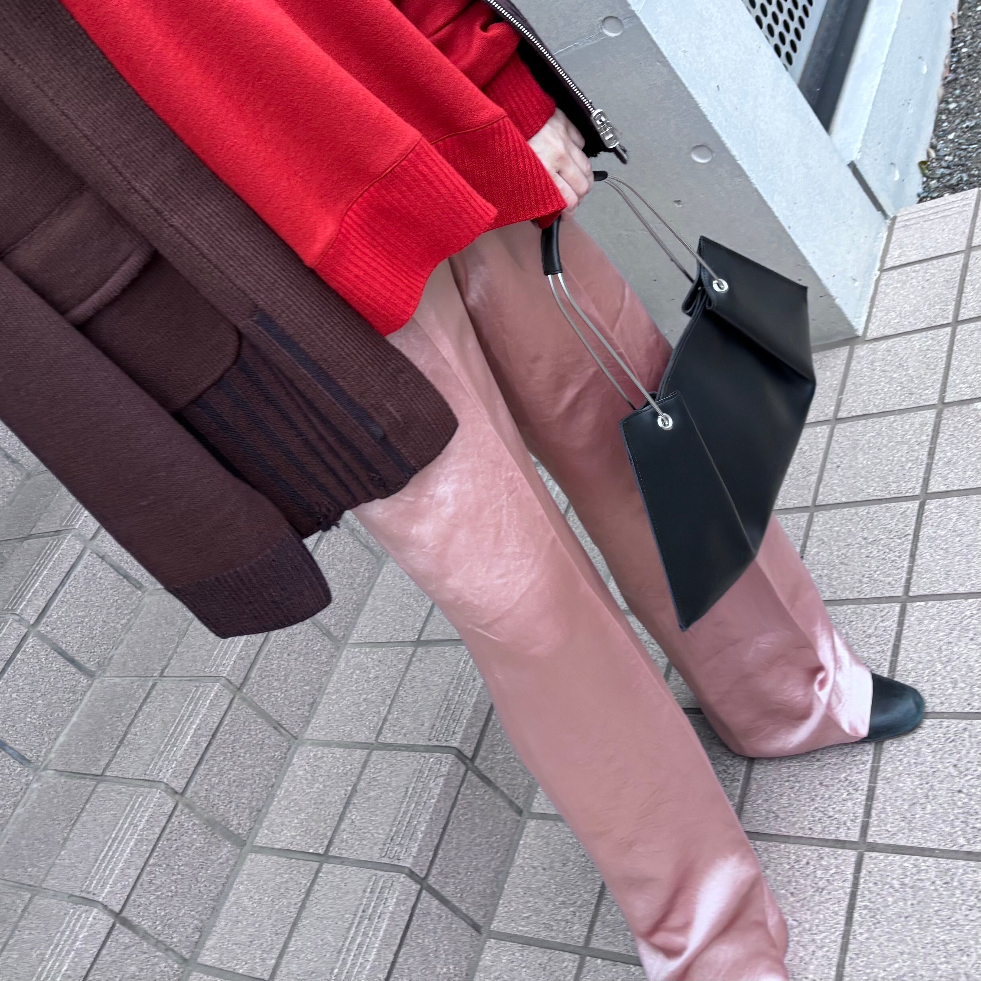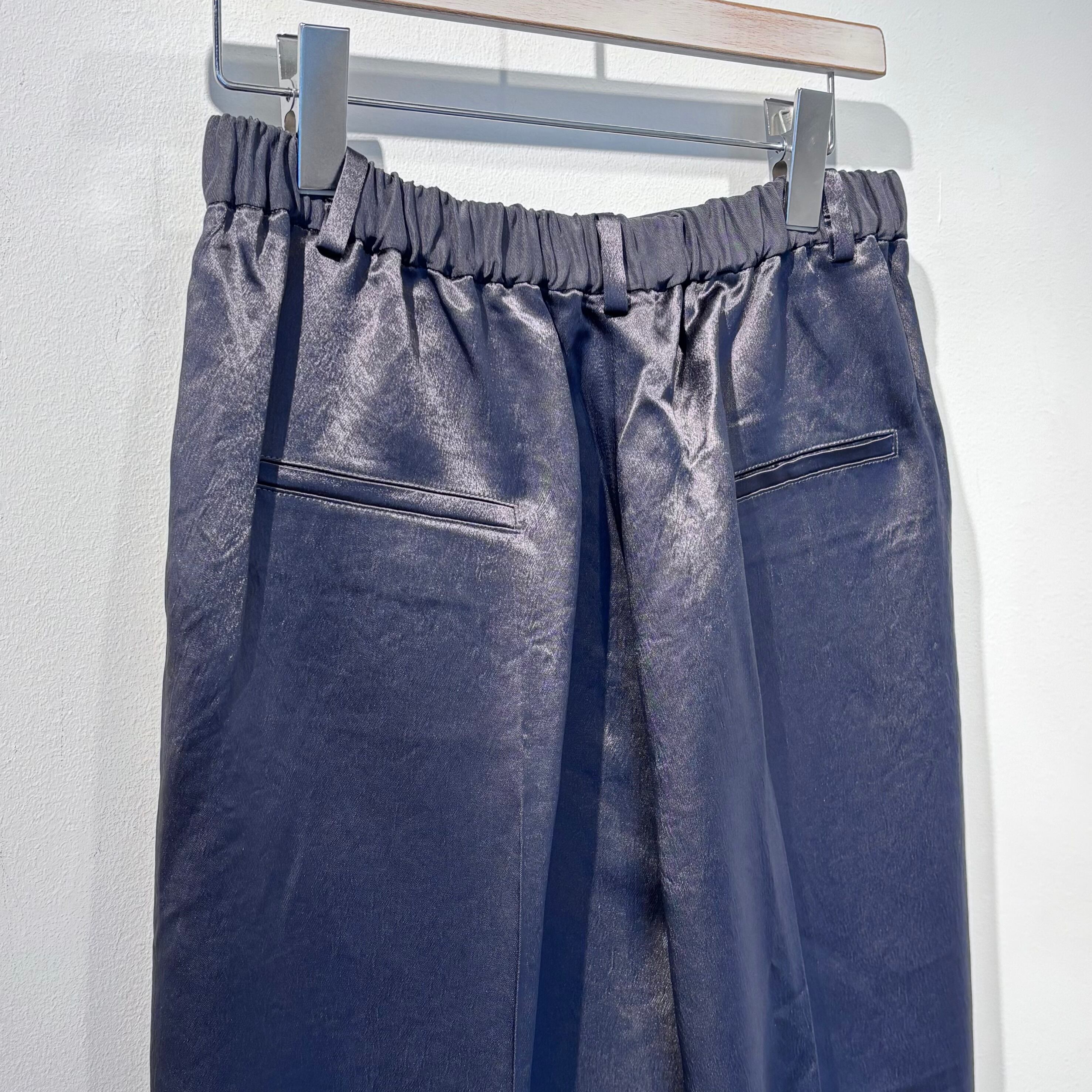 上品な光沢のあるワイドパンツです。