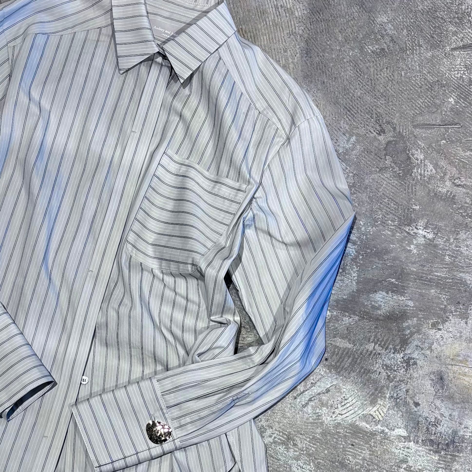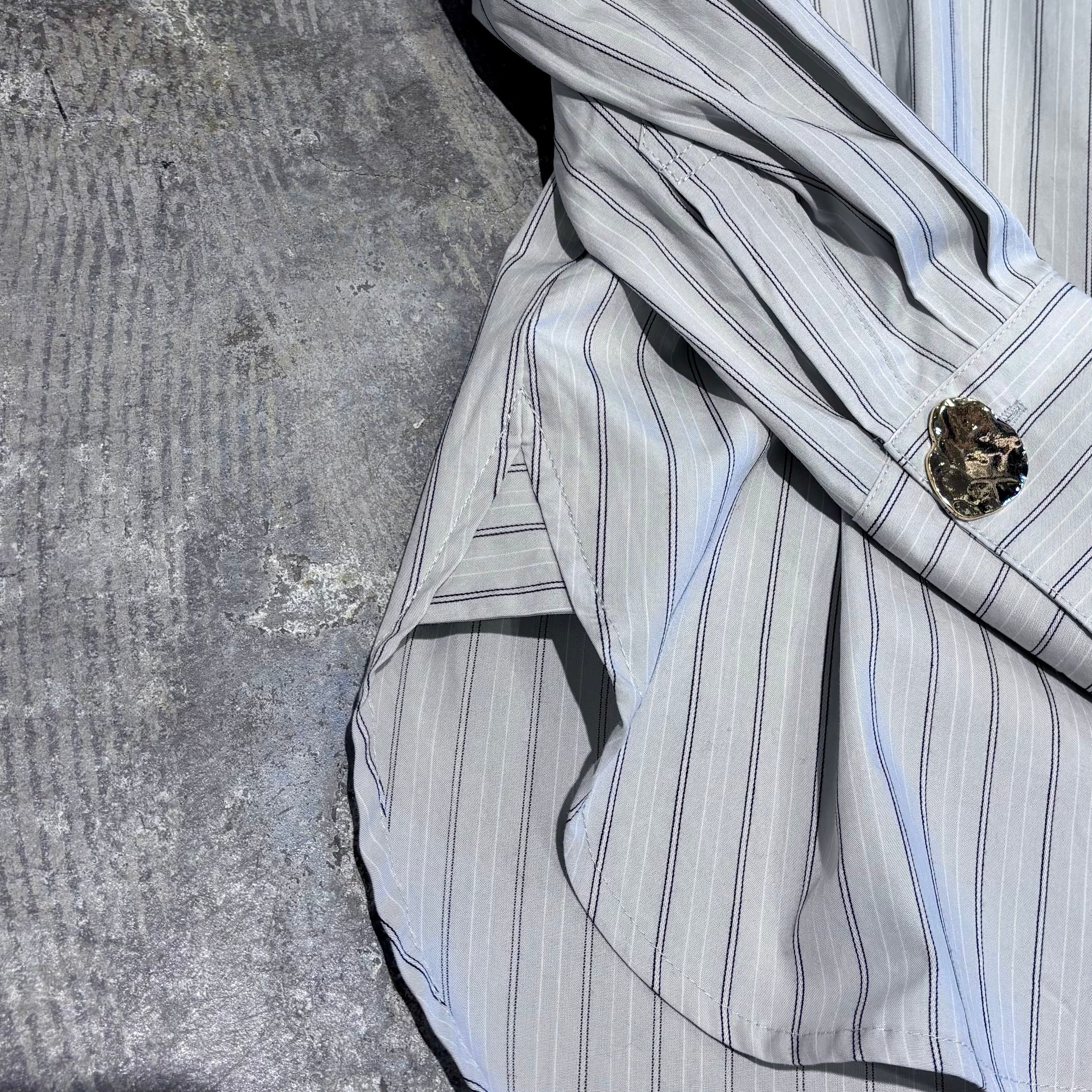 長めのカフスとストライプ柄がマニッシュな雰囲気のシャツです。