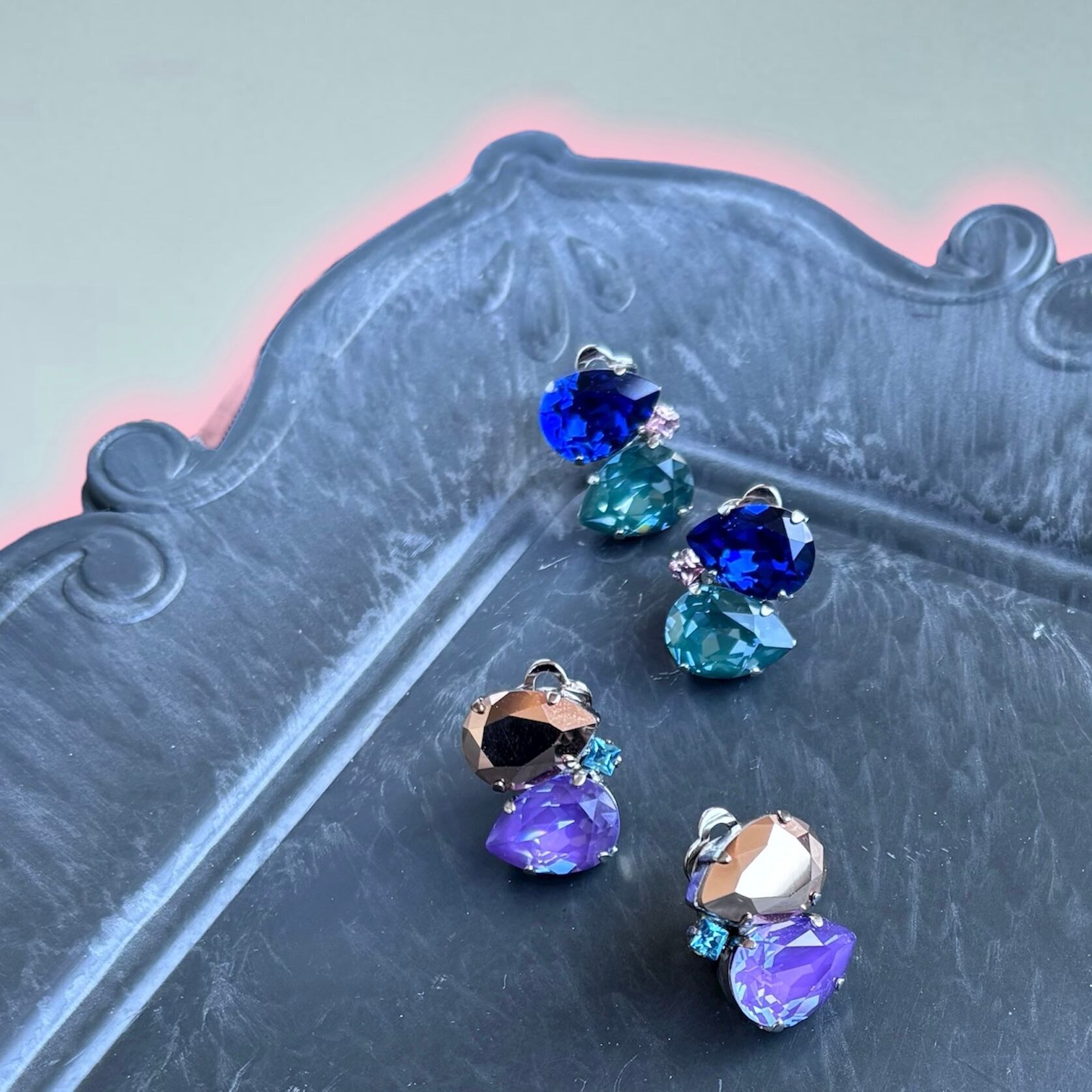 素材:クリスタルガラス、真鍮、チタンポスト(ピアス)