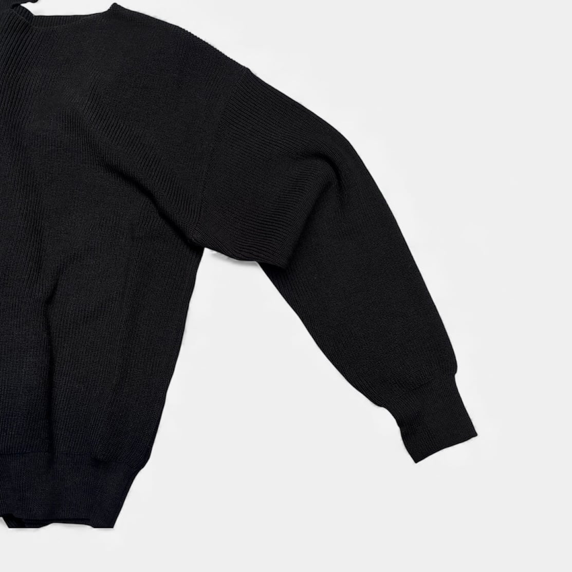 表面はすっきりとした素材感なので春先の肌寒いシーズンにも着用しやすいニットです。