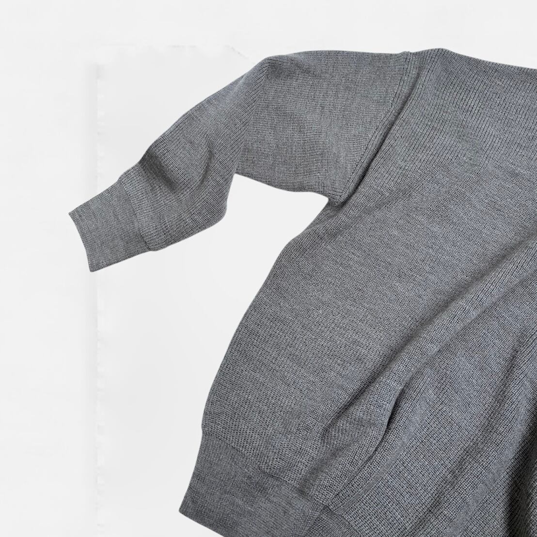 表面はすっきりとした素材感なので春先の肌寒いシーズンにも着用しやすいニットです。