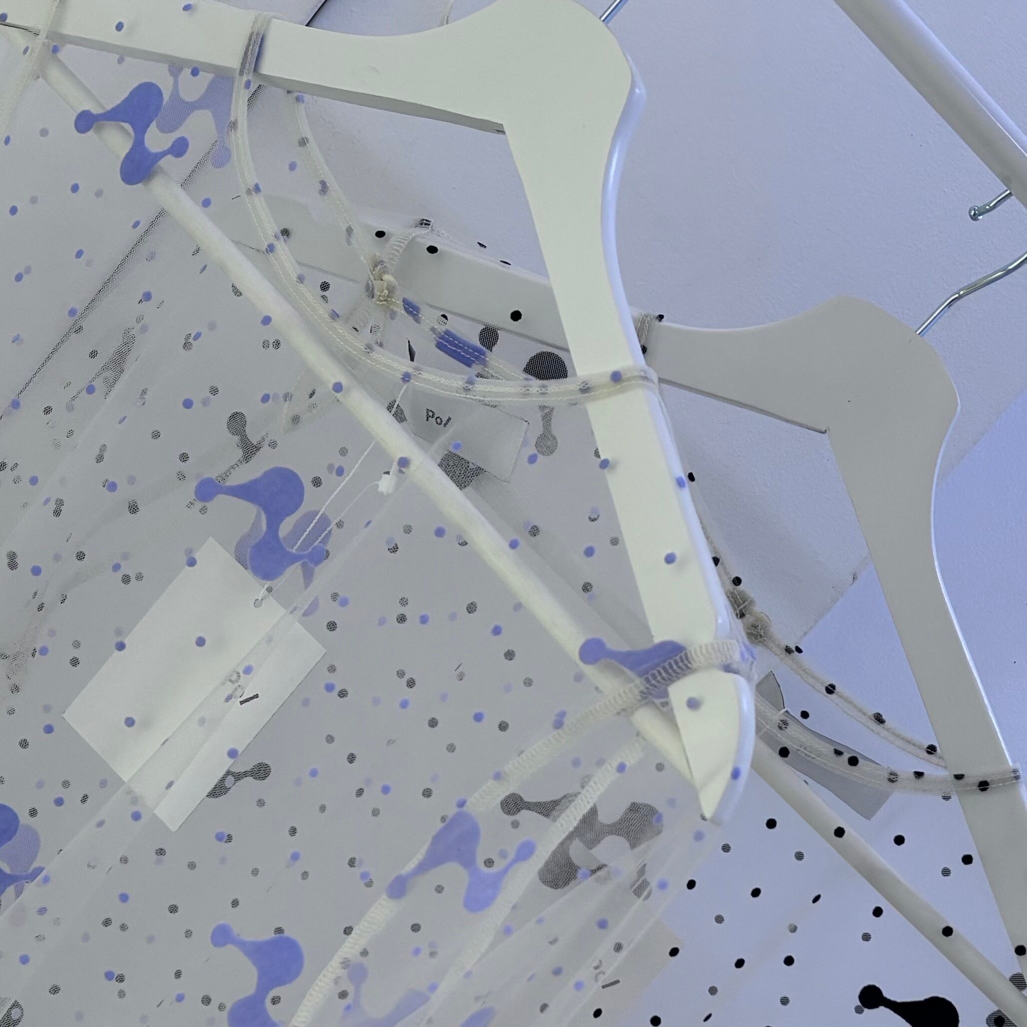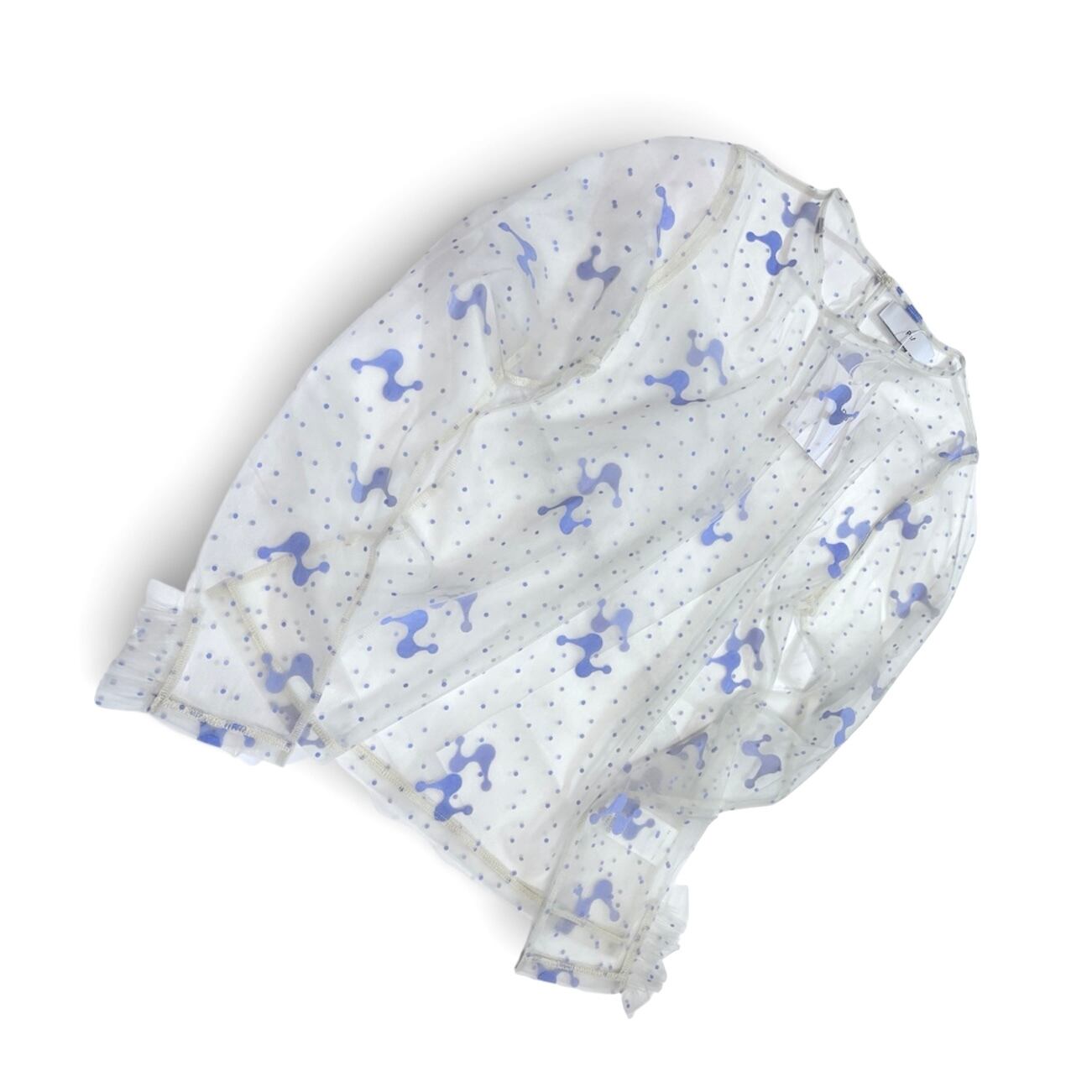 透け感のあるチュール素材にオリジナルのフロッキープリントを施したトップス。