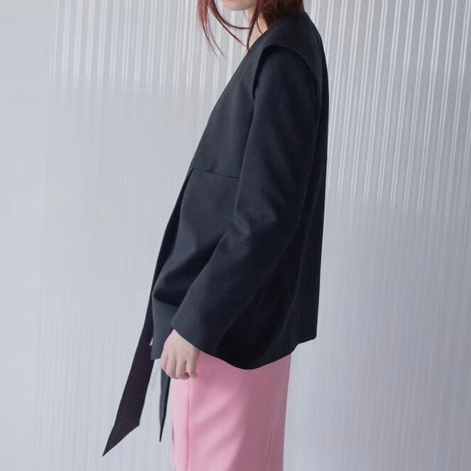 モードなエッセンスと女性らしさが同時に叶うRibbon jacket。