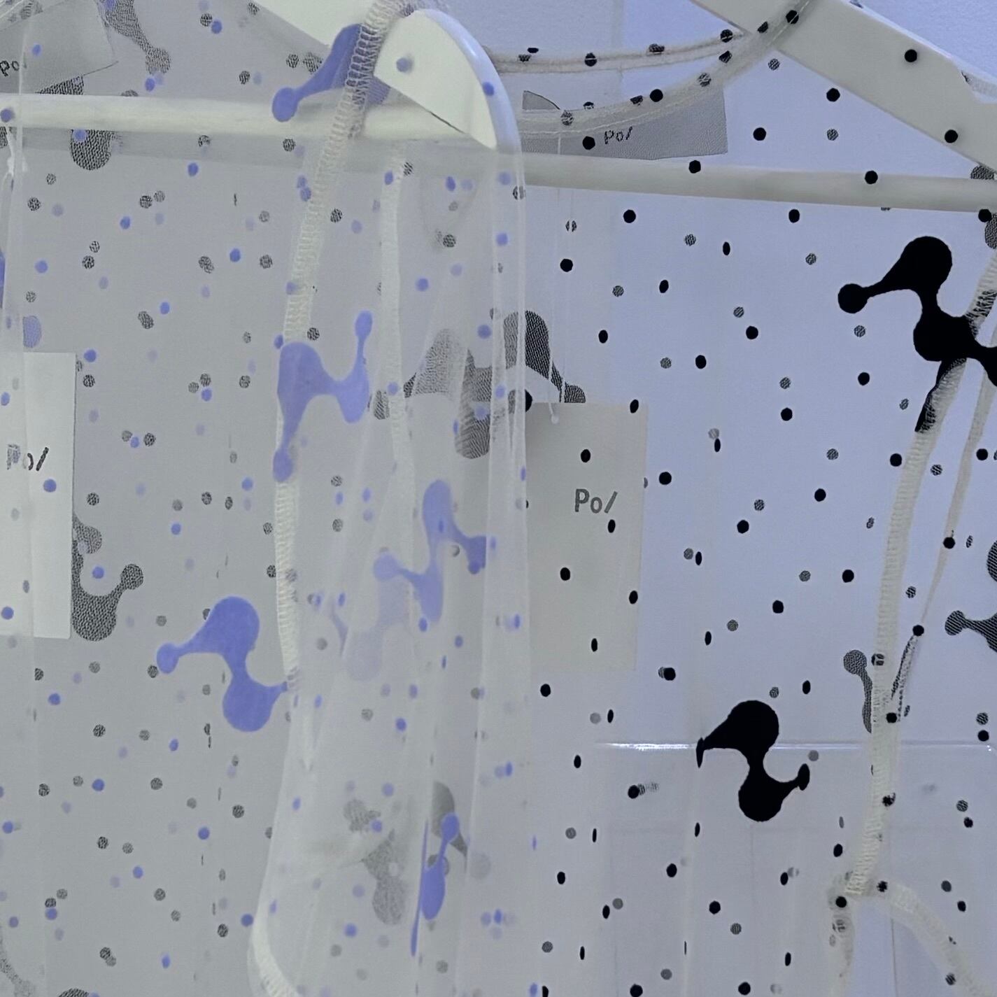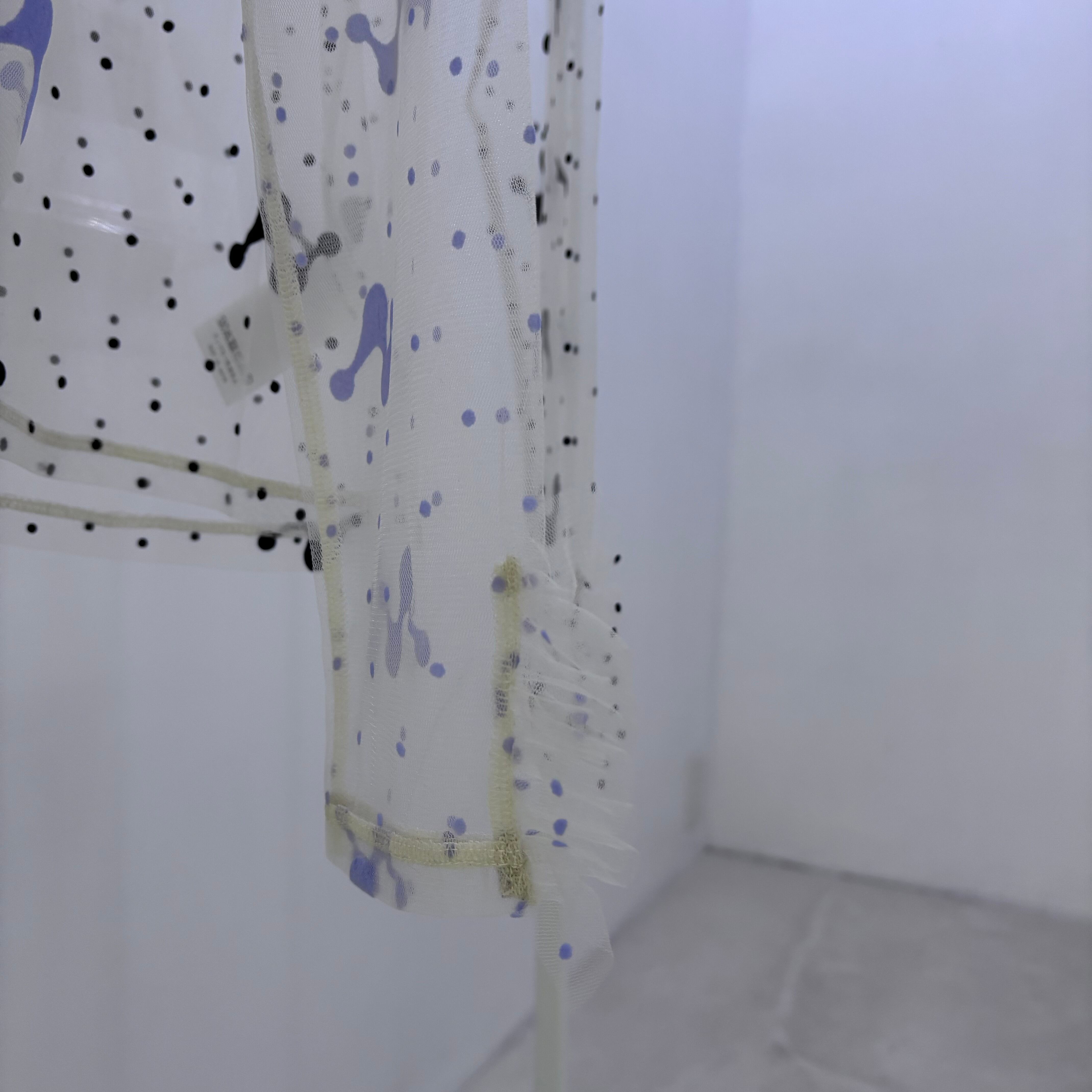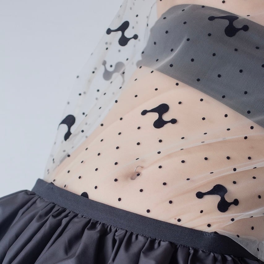 透け感のあるチュール素材にオリジナルのフロッキープリントを施したトップス。