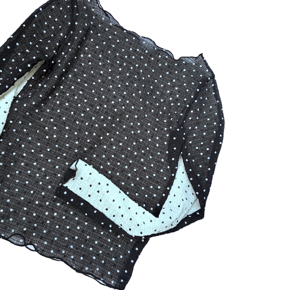 小ぶりなドット柄は柄もの同士のMIXコーデにも