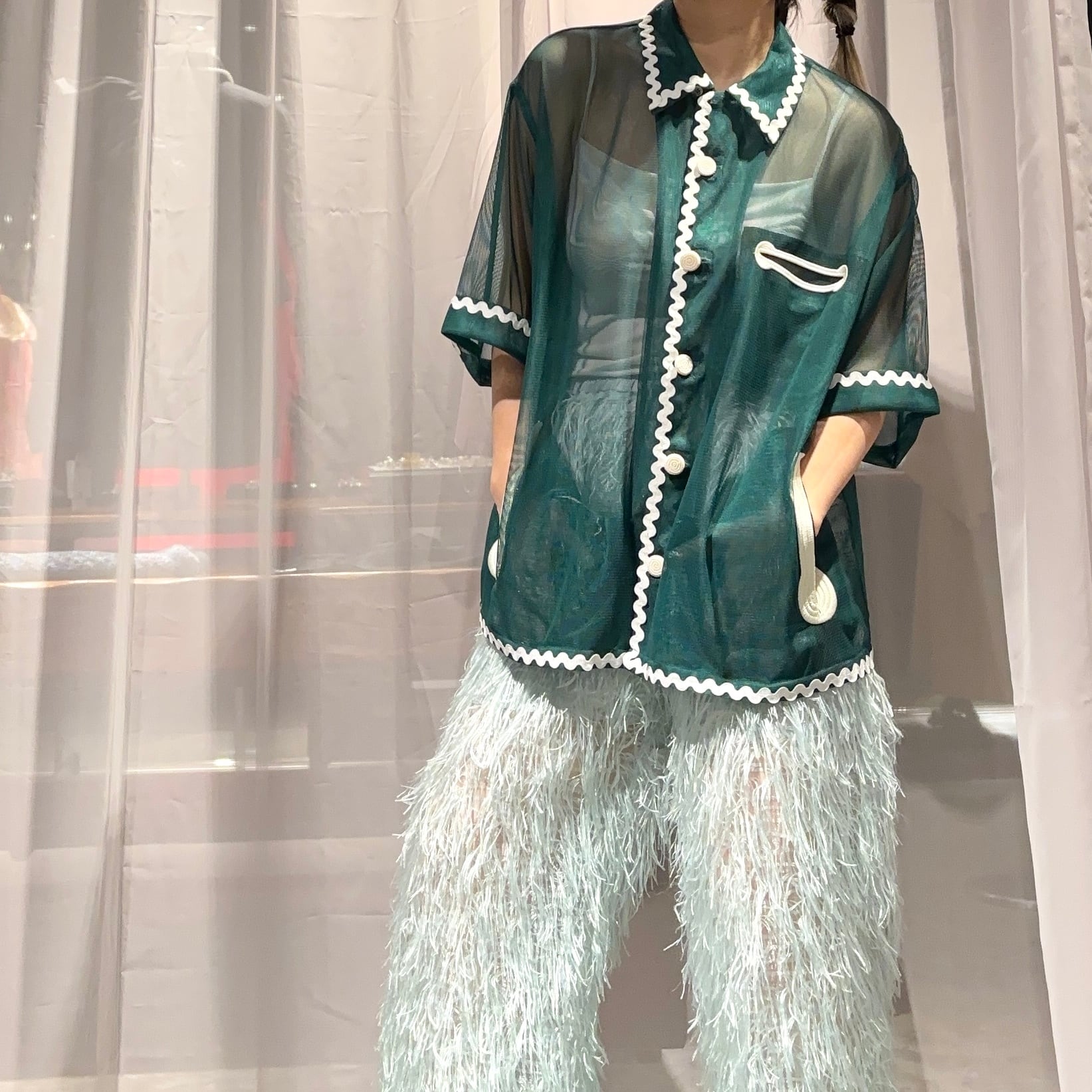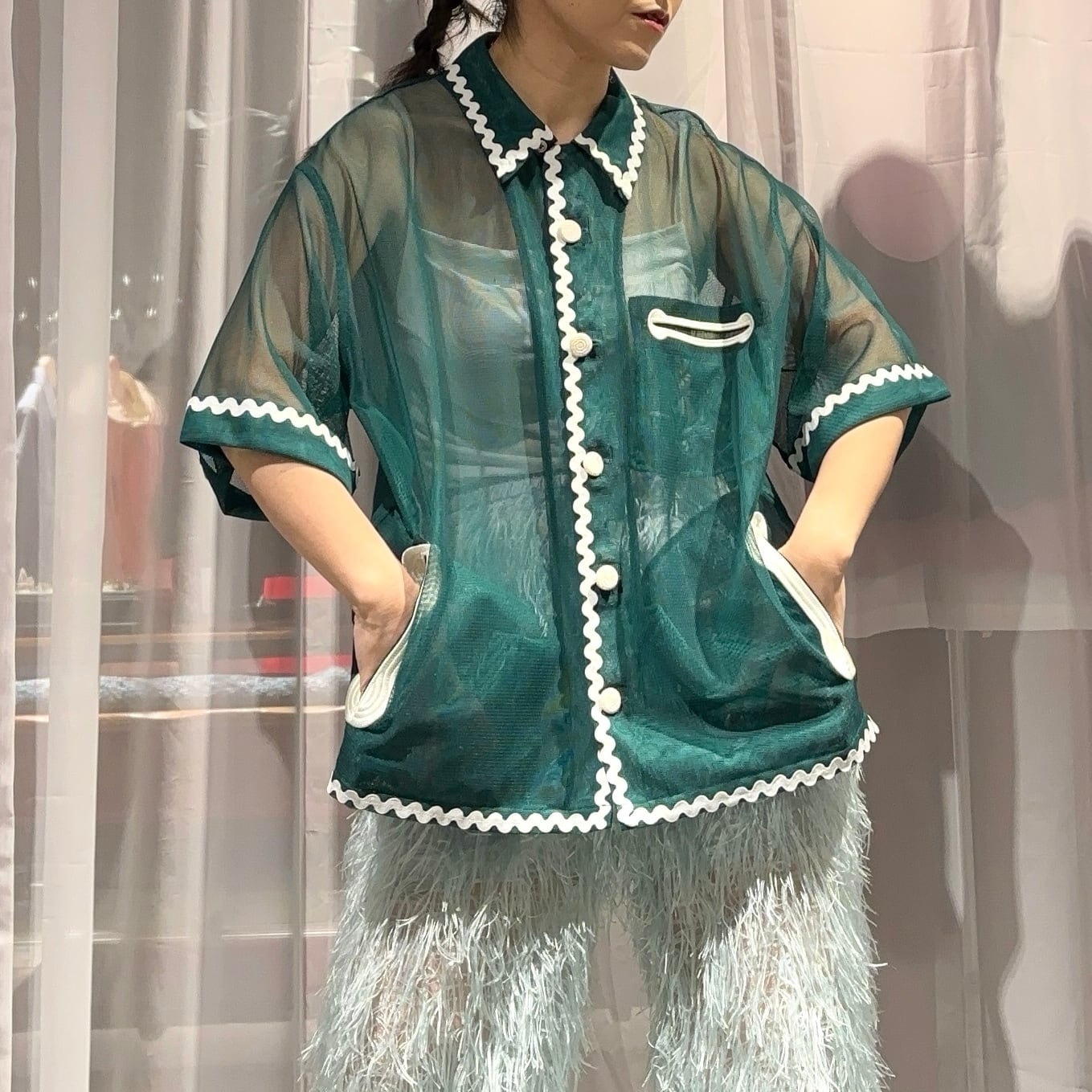 透け感を楽しむシャツジャケットデザインです。