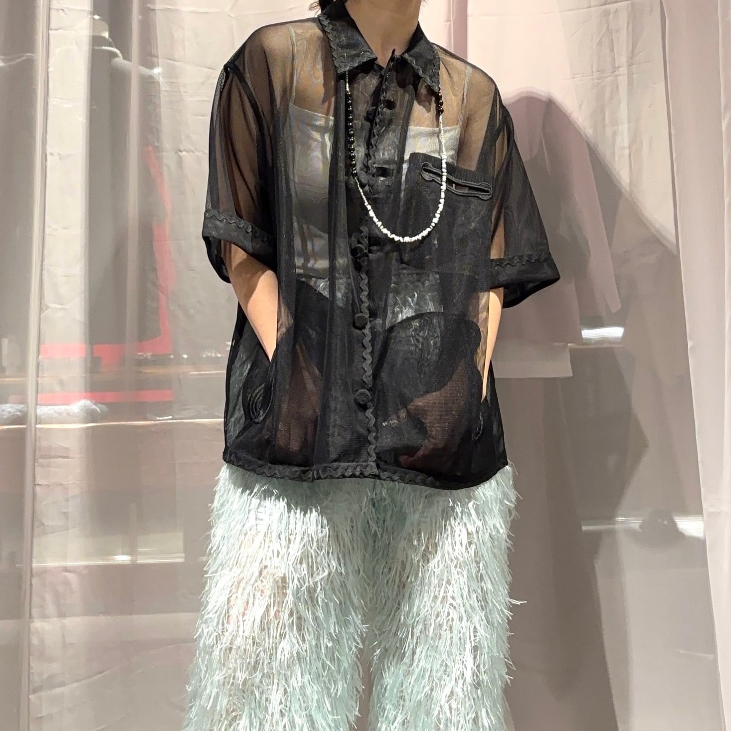 透け感を楽しむシャツジャケットデザインです。