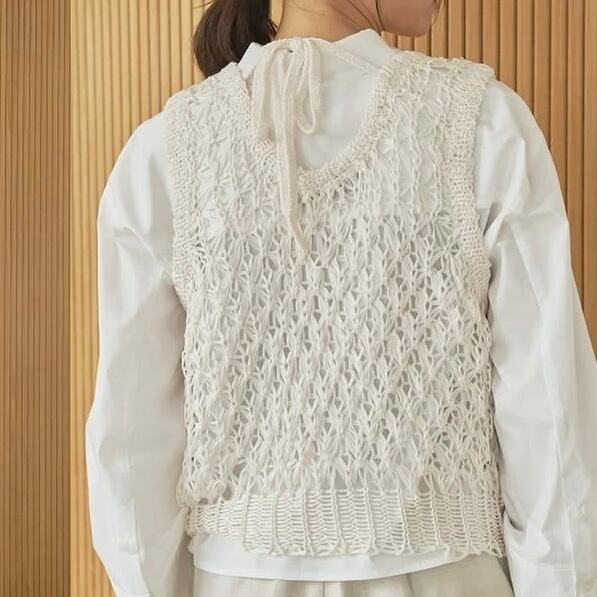 立体的な編み地が印象的なニットベスト。