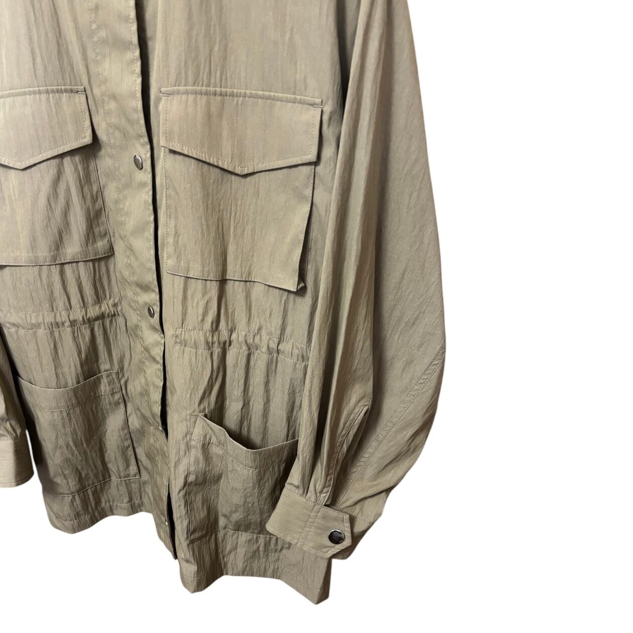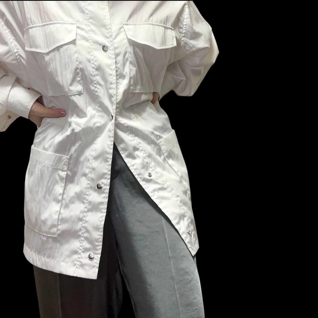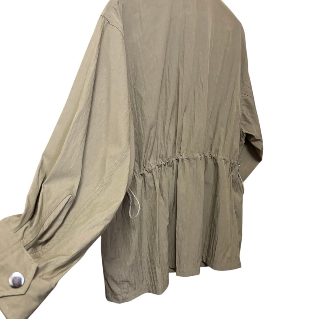 かなり薄手のシャカシャカ素材なので、ボタンを閉めて