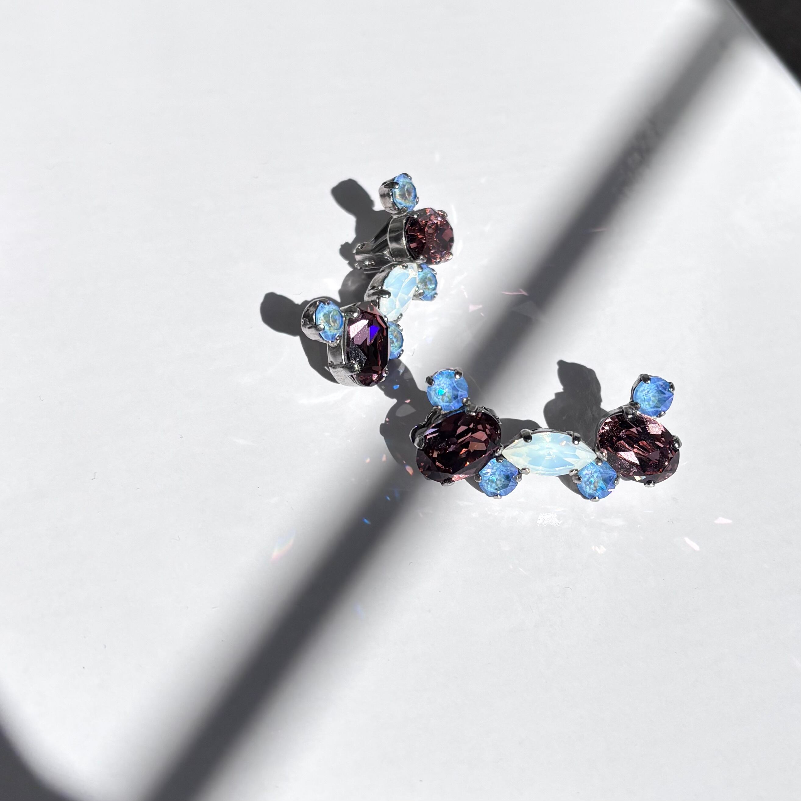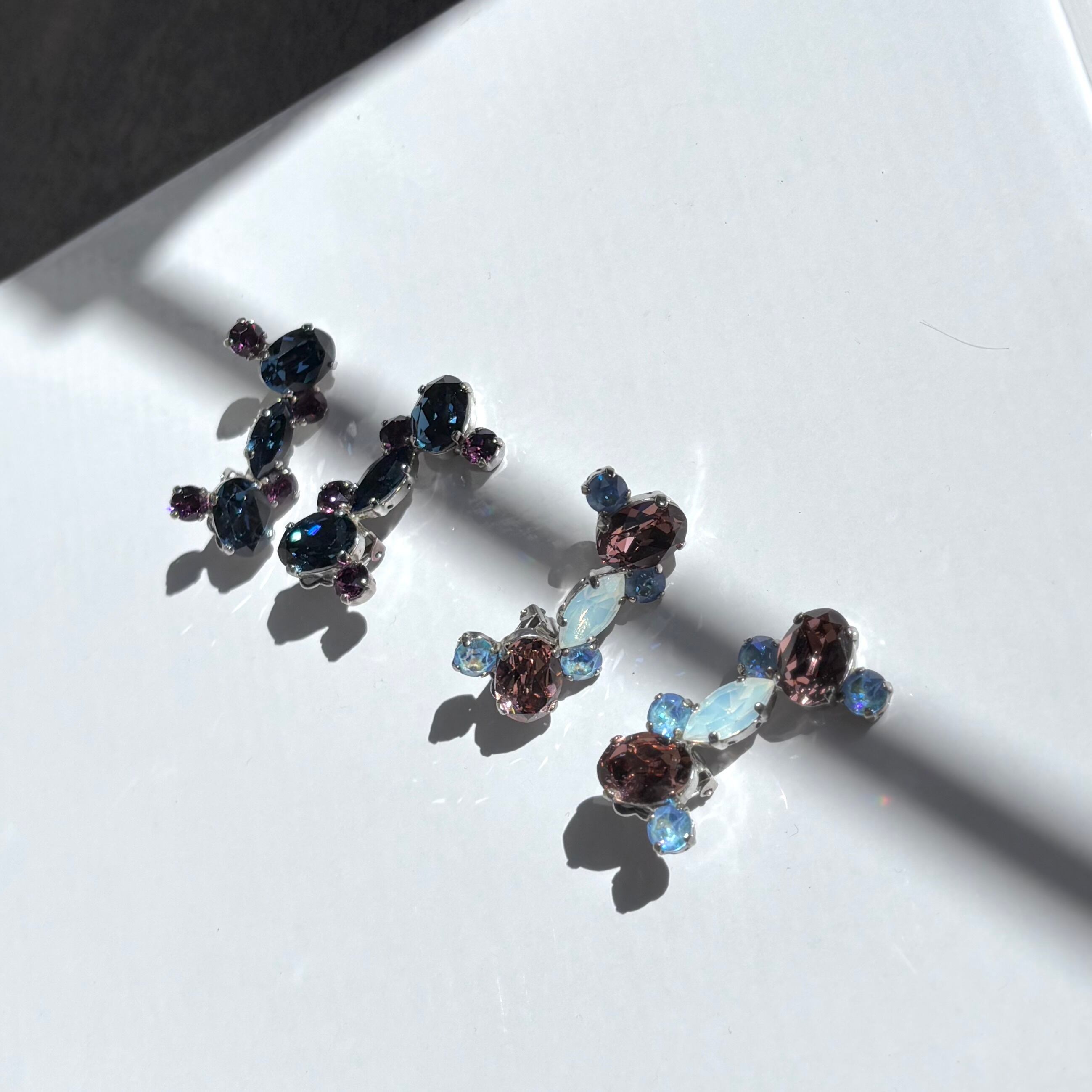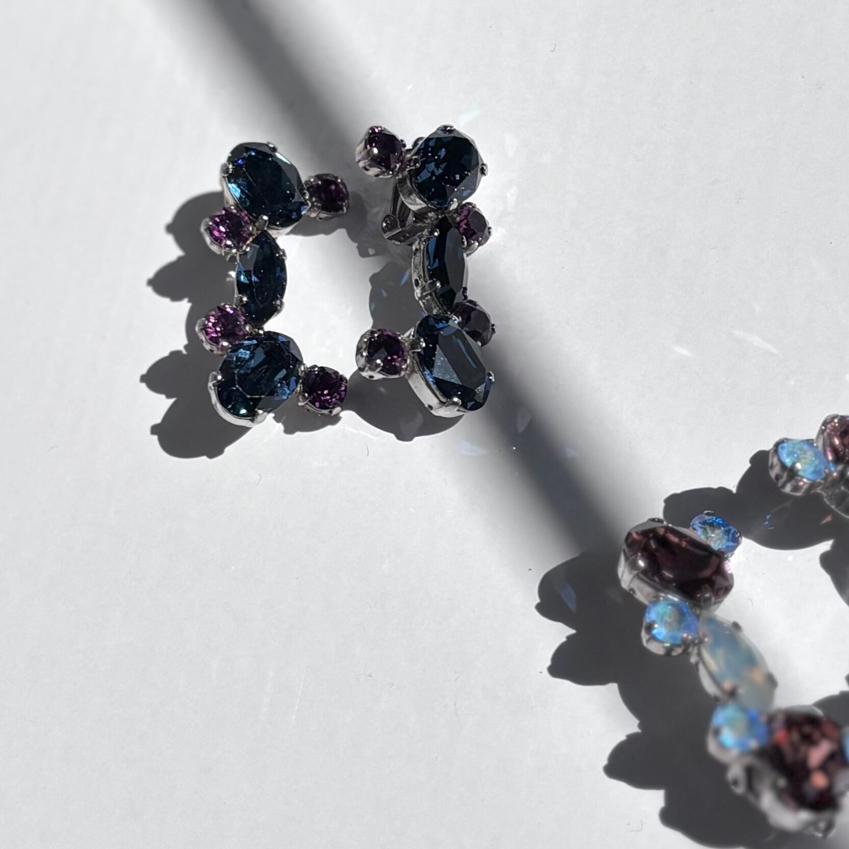 額縁、サークル、植物、、と想像が膨らむアーティスティックなデザインのイヤリングです。