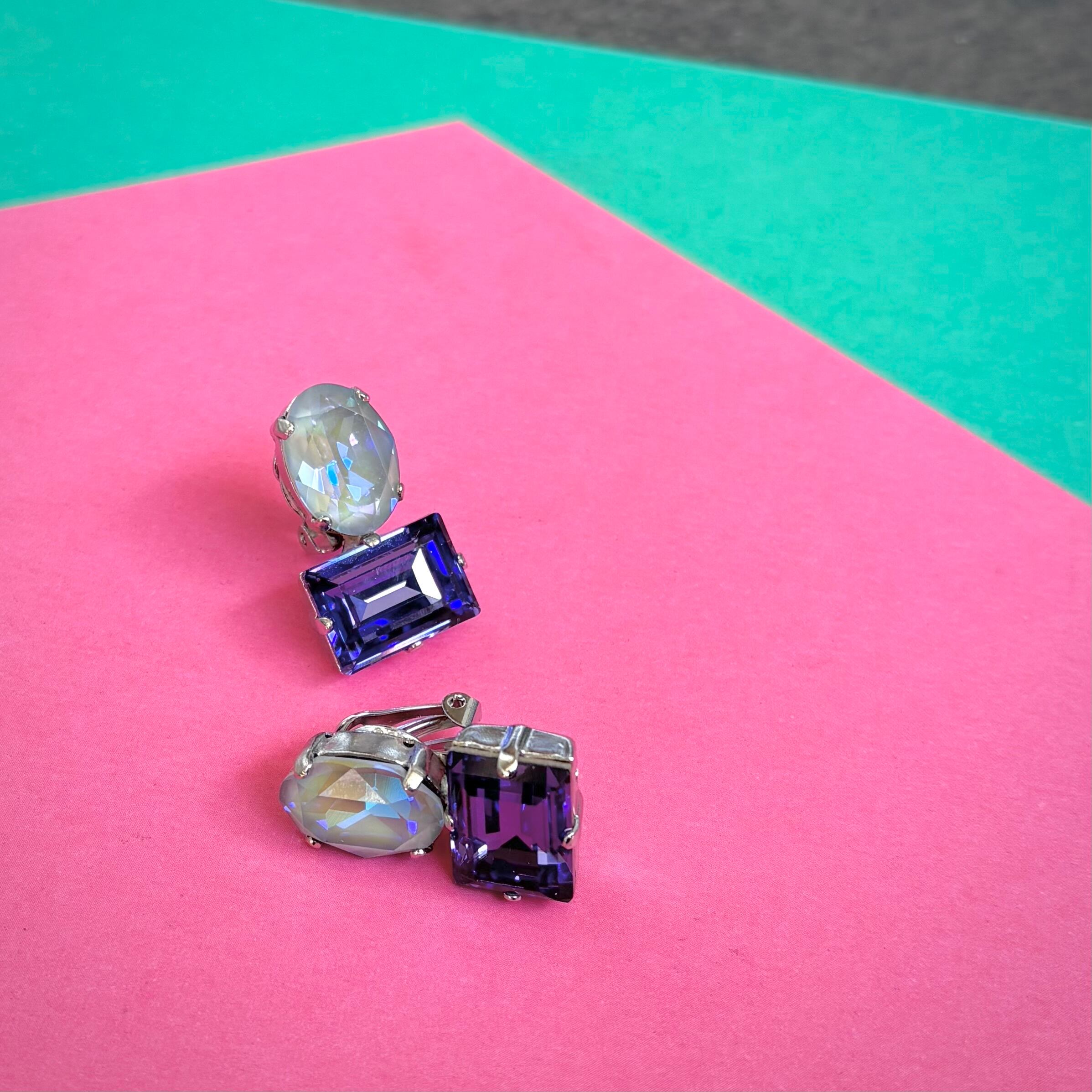 配色が美しいクリスタルイヤリング。